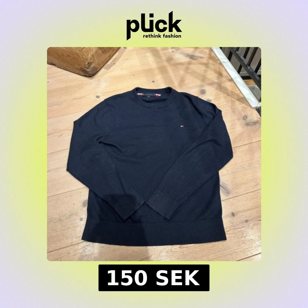 Säljer en stilren svart tröja från Tommy Hilfiger i en mjuk bomulls- och kashmirblandning. Tröjan har långa ärmar och en liten logotyp på bröstet. Perfekt för en klassisk look.