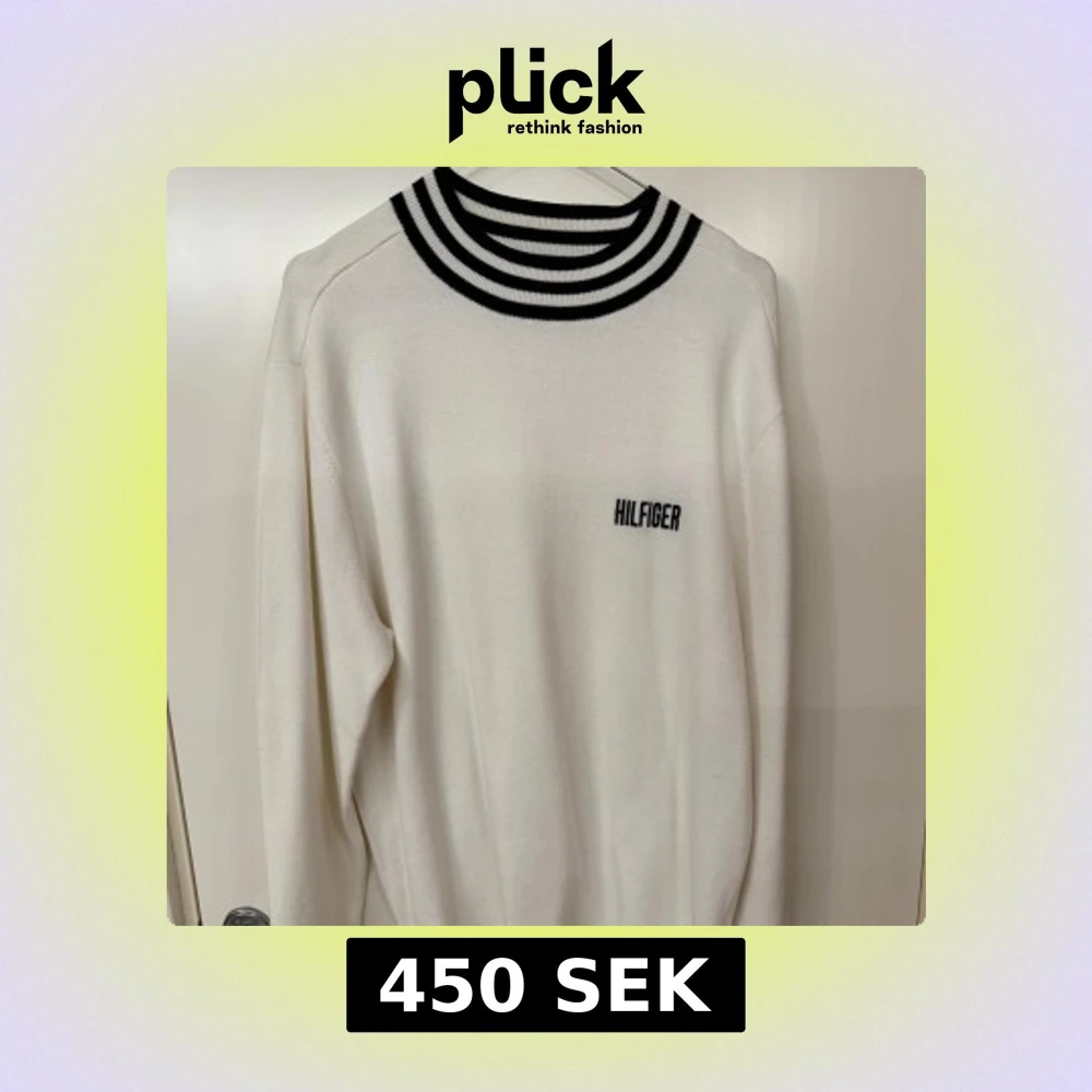 Snygg vit långärmad tröja från Tommy Hilfiger med svart broderad logga på bröstet. Tröjan har en unik ribbad krage med svarta och vita ränder som ger en sportig känsla. Perfekt för en stilren och avslappnad look.
