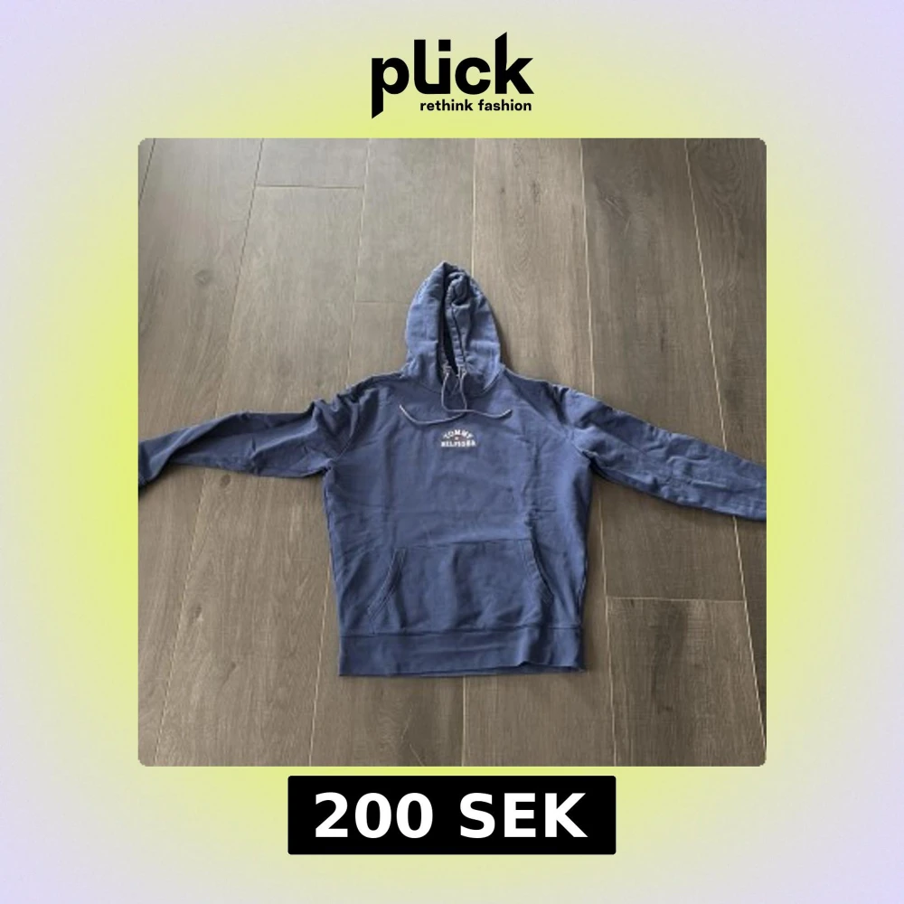 Snygg marinblå hoodie från Tommy Hilfiger med broderad logga på bröstet. Tröjan har huva med snörning, känguruficka och långa ärmar. Perfekt för en chill och stilren look.