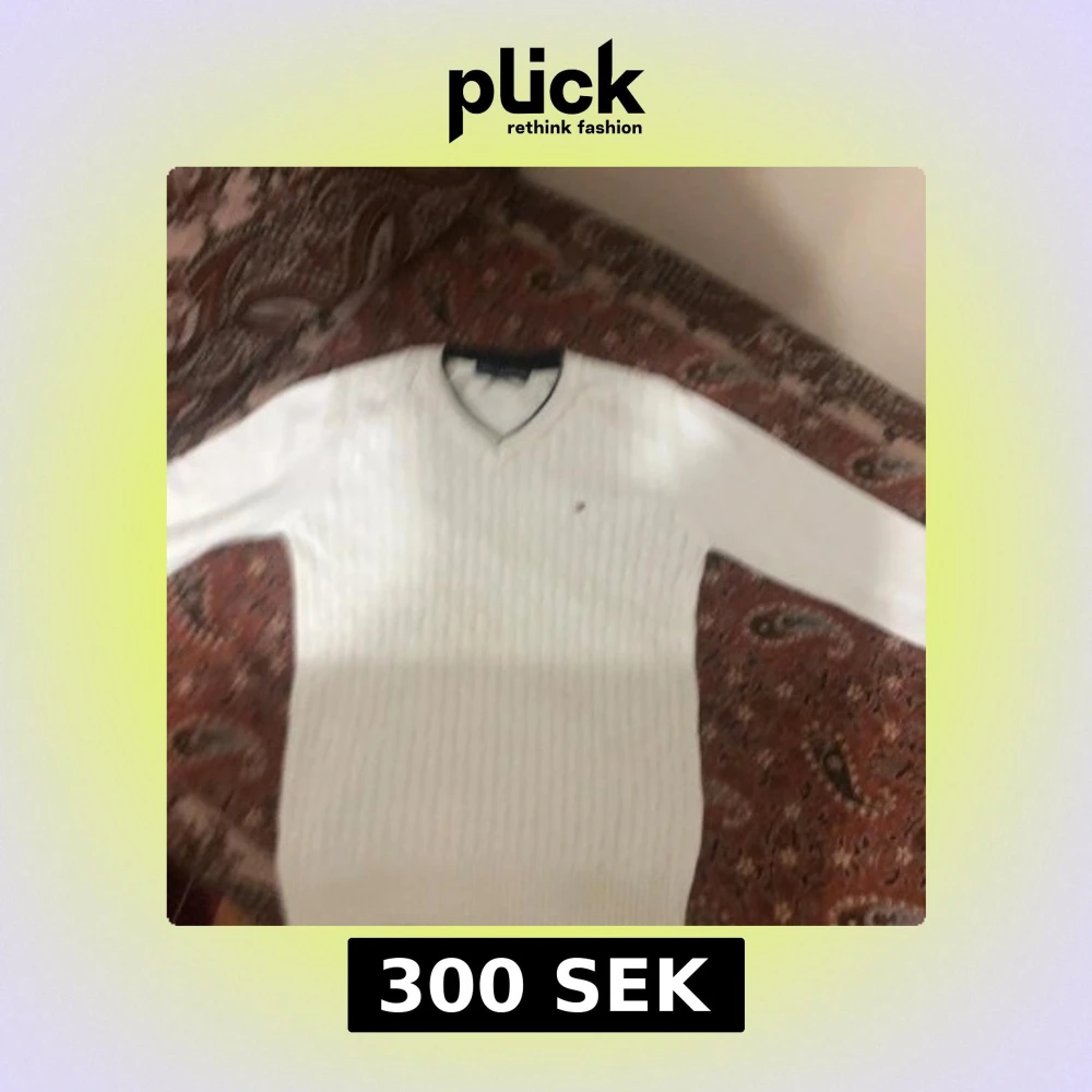 Säljer en stilren vit ribbad tröja från Tommy Hilfiger med v-ringning. Tröjan har långa ärmar och en liten logotyp på bröstet. Perfekt för en klassisk look.
