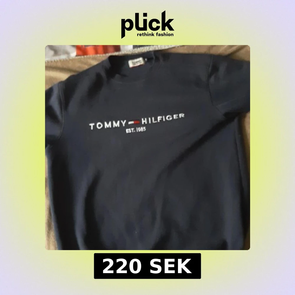Snygg mörkblå tröja från Tommy Hilfiger med klassisk logga och texten 'EST. 1985' broderad på bröstet. Tröjan har rund halsringning och långa ärmar, perfekt för en stilren och avslappnad look.Har storlek M