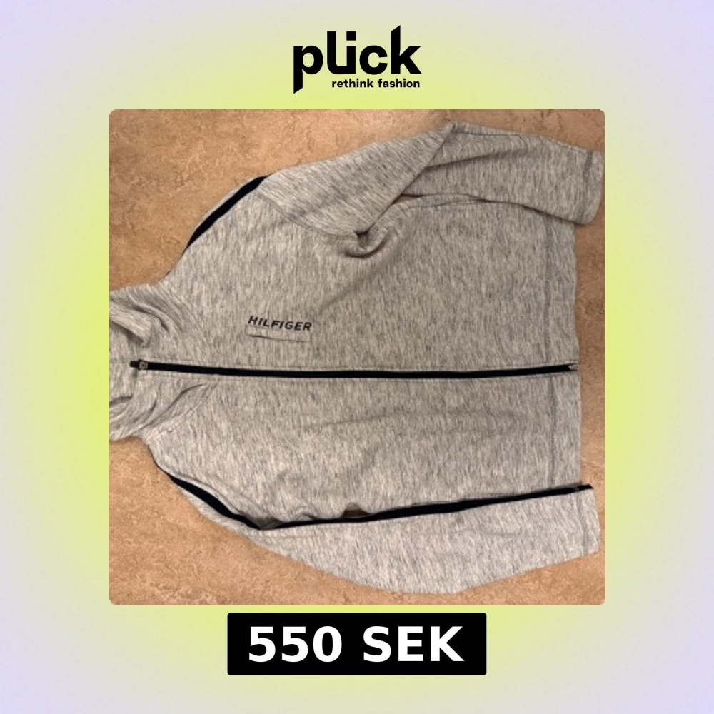 Snygg ljusgrå hoodie från Tommy Hilfiger i storlek M. Tröjan har hel dragkedja framtill, diskret Hilfiger-logga på bröstet och svarta detaljer längs ärmarna. Mjuk och skön bomullsmix med långärmad passform och huva.