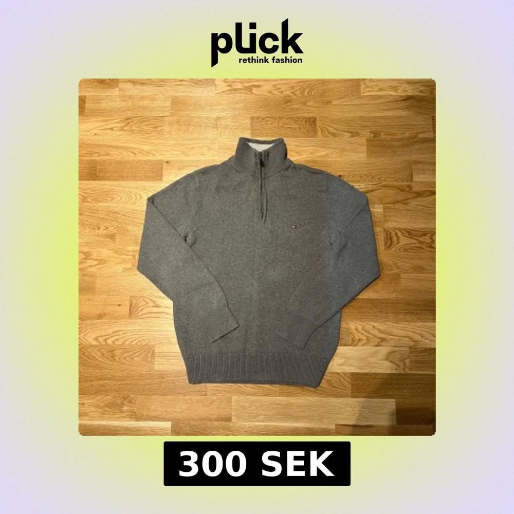 Säljer en snygg grå quarter zip tröja från Tommy Hilfiger i bomull med ribbade detaljer. Perfekt för en avslappnad och snygg look.