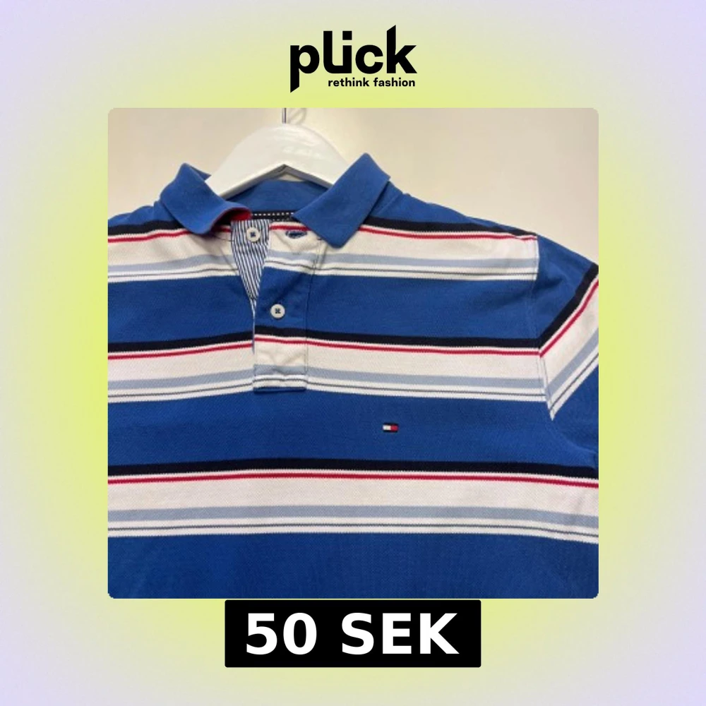 Blå och vit randig pikétröja från Tommy Hilfiger