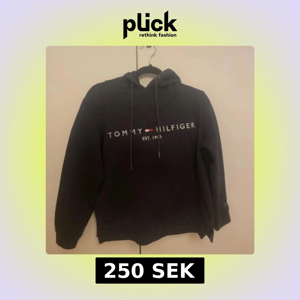 Svart hoodie från Tommy Hilfiger i storlek S med klassisk logga och snörning i huvan. Mjuk insida och långärmad modell, perfekt för chill dagar. Materialet är bomull och polyester för en skön känsla. Snygg och enkel att matcha med jeans eller joggers. Nypris: 1250kr