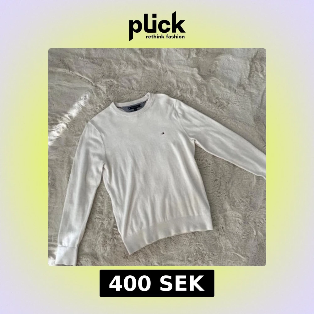 Vit stickad tröja från Tommy Hilfiger i storlek S. Klassisk rund halsringning och diskret broderad logga på bröstet. Tröjan har långa ärmar och ribbade muddar för en clean och stilren look. Perfekt för lager-på-lager under hösten och vintern.