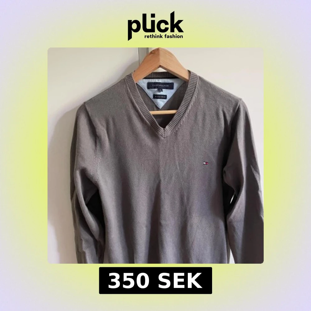 Snygg beige v-ringad tröja från Tommy Hilfiger i premium bomull. Klassisk design med diskret logga på bröstet och ribbade muddar vid hals och ärmslut. Perfekt för dig som gillar stilrena och enkla plagg med en touch av märkesfeeling. Skick 10/10 och inga skador