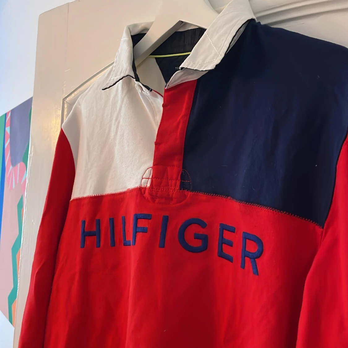 Långärmad rugbytröja Tommy Holfiger. Sparsamt använd, fint skick. Köparen betalar frakt.