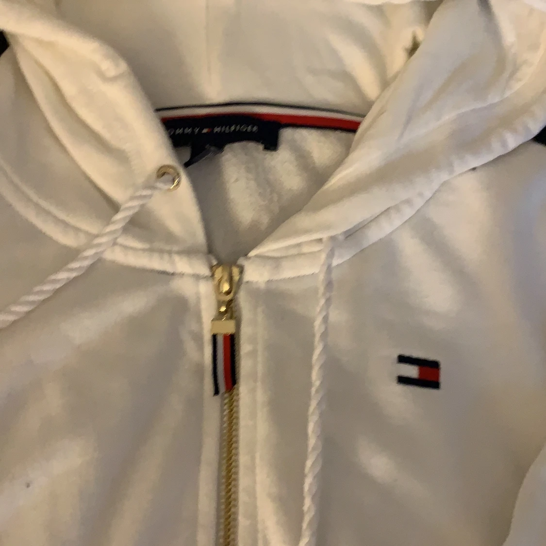 Vit tommy hilfiger kofta med guld detaljer