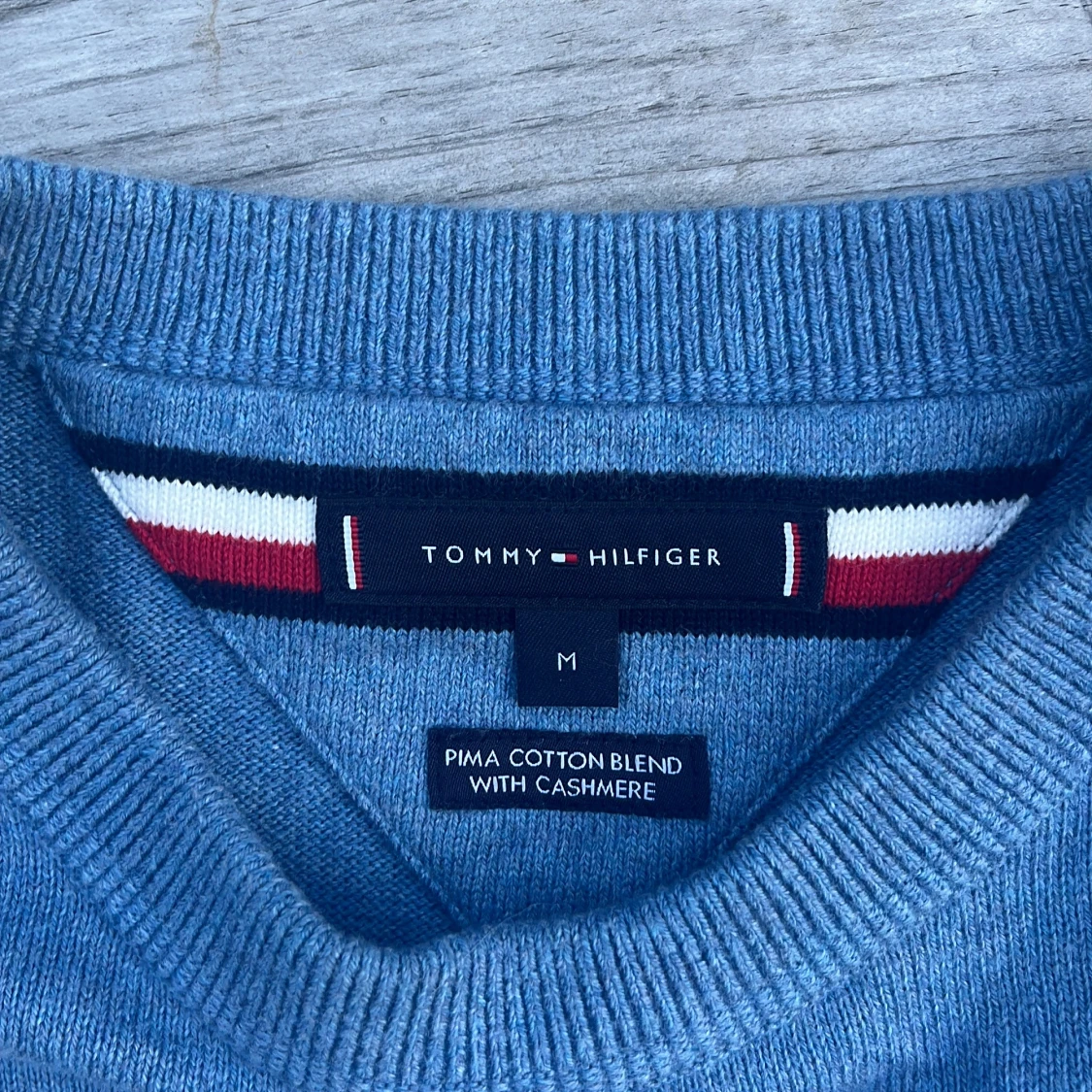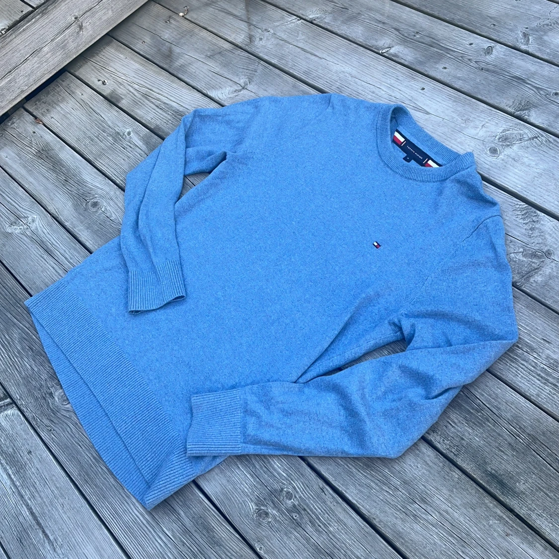 Säljer denna snygga ljusblåa ”sweatshirten” från Tommy Hilfiger i pima bomullsblandning med kashmir. Tröjan är använd 2 gånger och är i toppskick. Storlek M. Vid minsta fråga elelr fundering är det bara höra av sig🤗🫡
