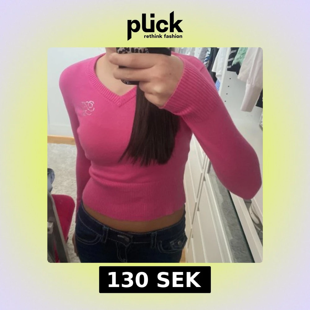 Säljer en snygg rosa tröja från Tommy.Tröjan har en v-ringad hals och är croppad med långa ärmar. Den ser mindre ut än vad den är!