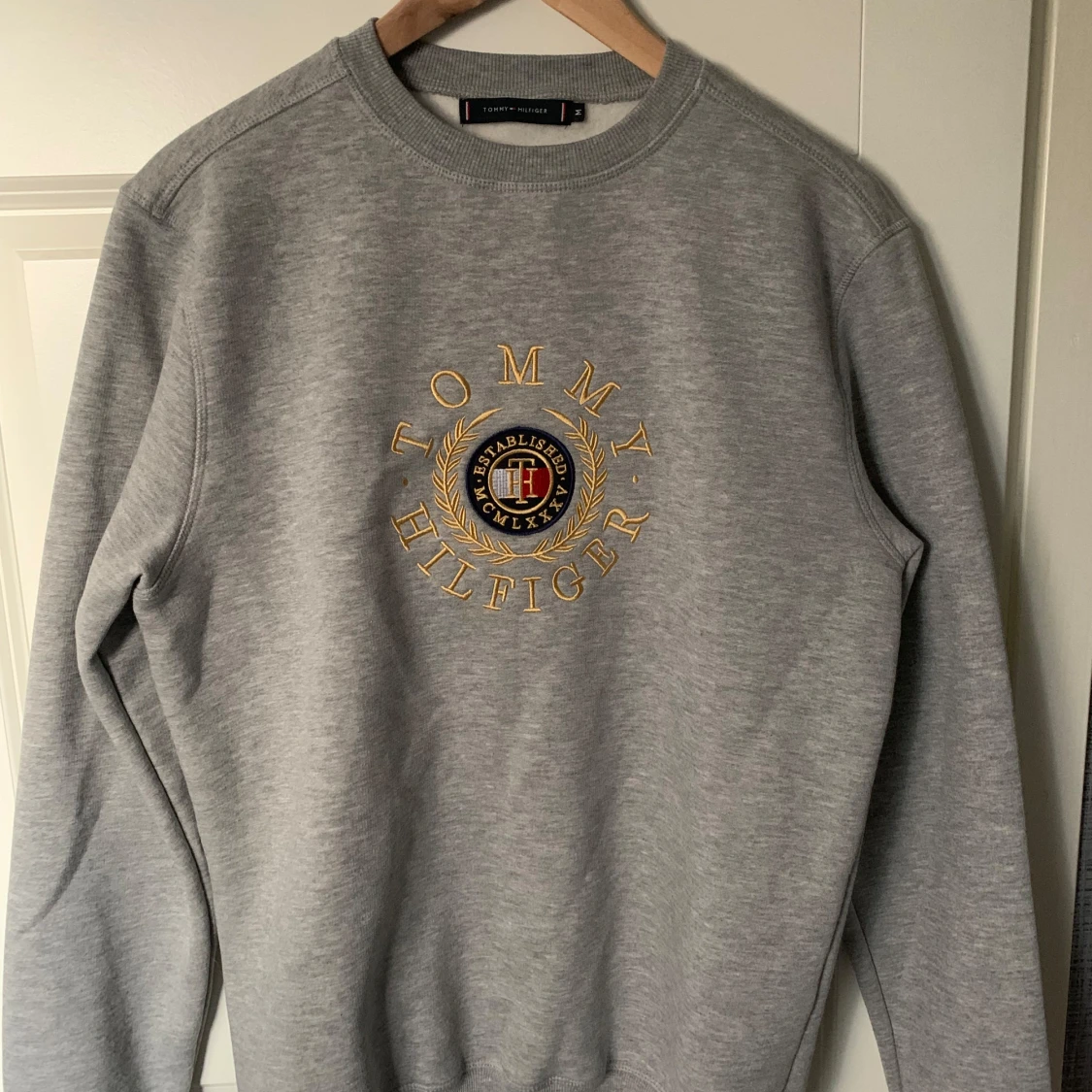 Säljer en stilren grå sweatshirt från Tommy Hilfiger, knappt använd