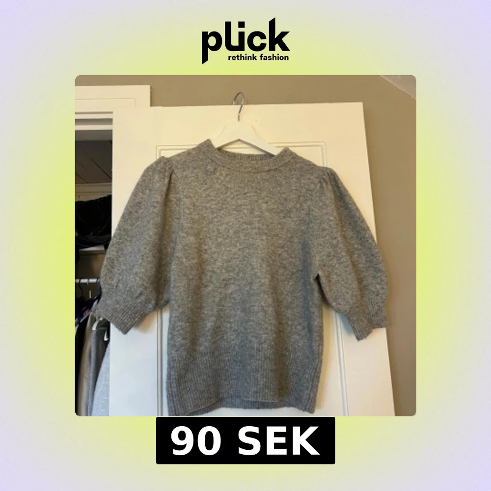 Mysig grå stickad tröja från H&M med rund halsringning och ribbade muddar. Tröjan har en något lös passform och är perfekt för kyligare dagar. Enkel och stilren design som passar till mycket.