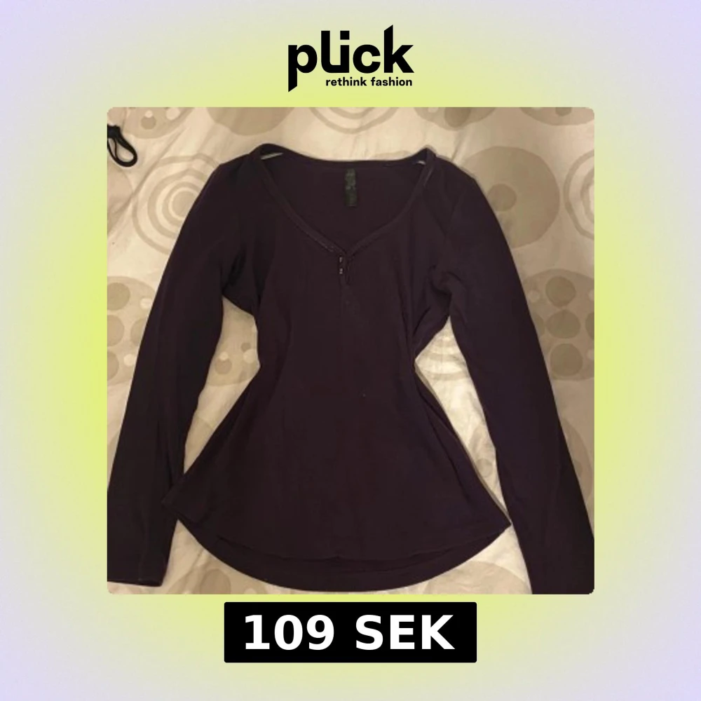 Söt mörklila långärmad topp med v-neck och två små knappar framför. 🍁🍂