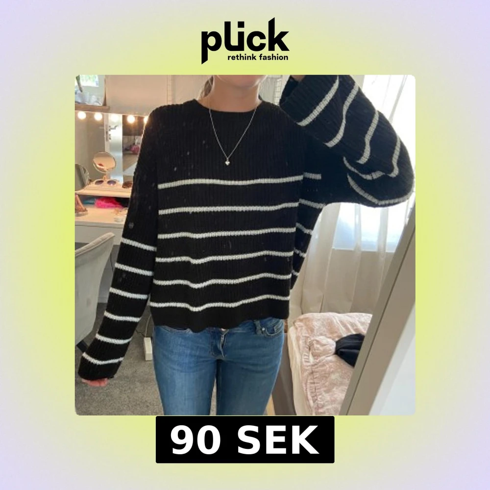 Säljer en fin stickad svart och vit tröja från Kappahl i storlek 170, fint skick!