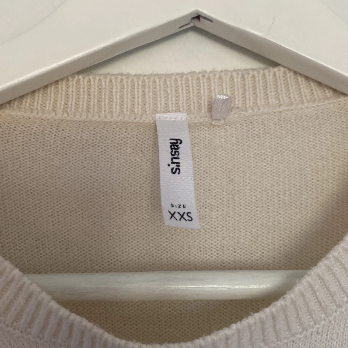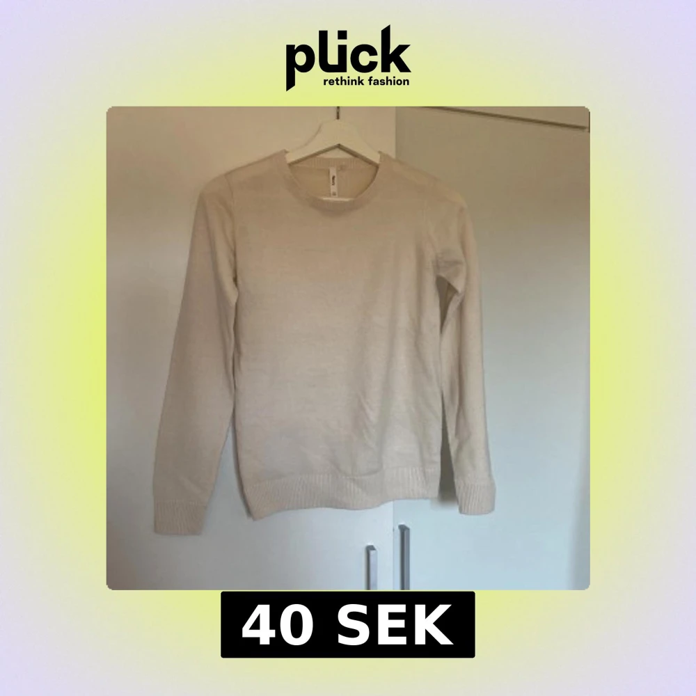 Säljer en stilren beige tröja från Sinsay. Den har en klassisk rund hals och långa ärmar med ribbade muddar. Perfekt för en enkel och snygg look.