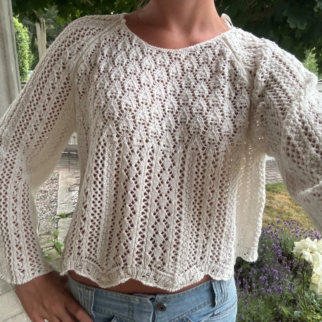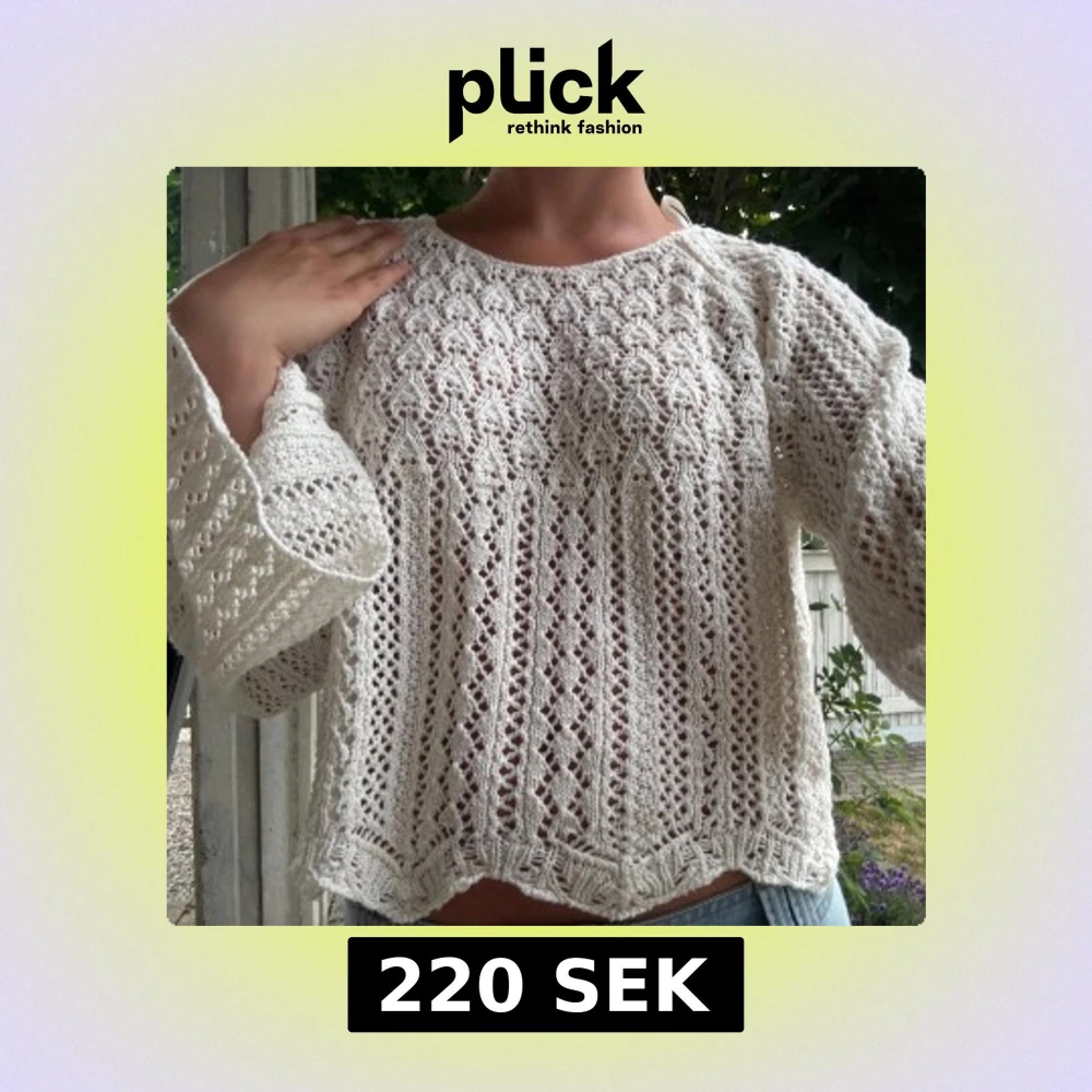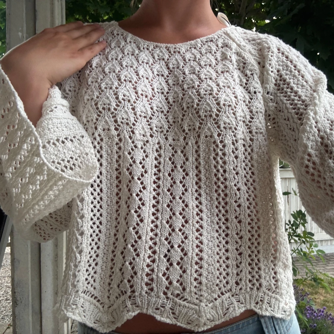 Vit stickad tröja med spetsmönster