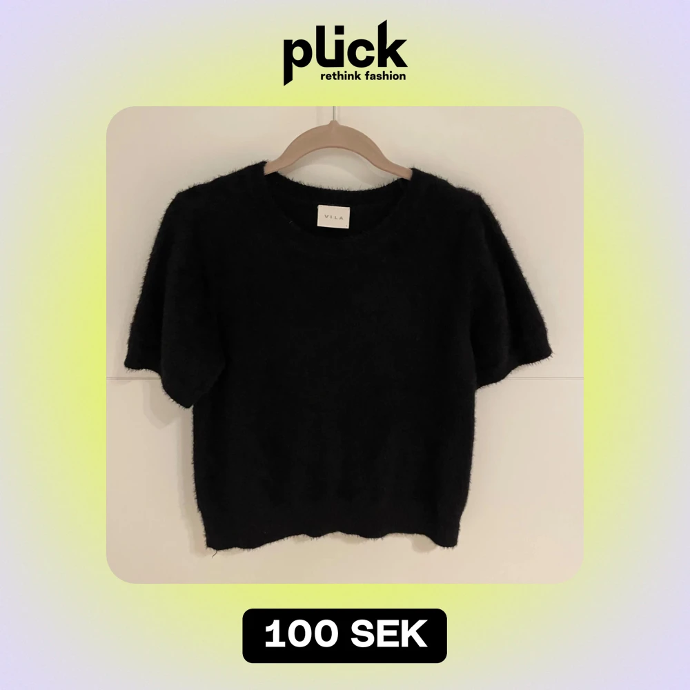 Mysig svart tröja från Vila i ett fluffigt material. Perfekt för en stilren look, med korta ärmar och rund hals. Passar bra till både vardag och fest. 🖤