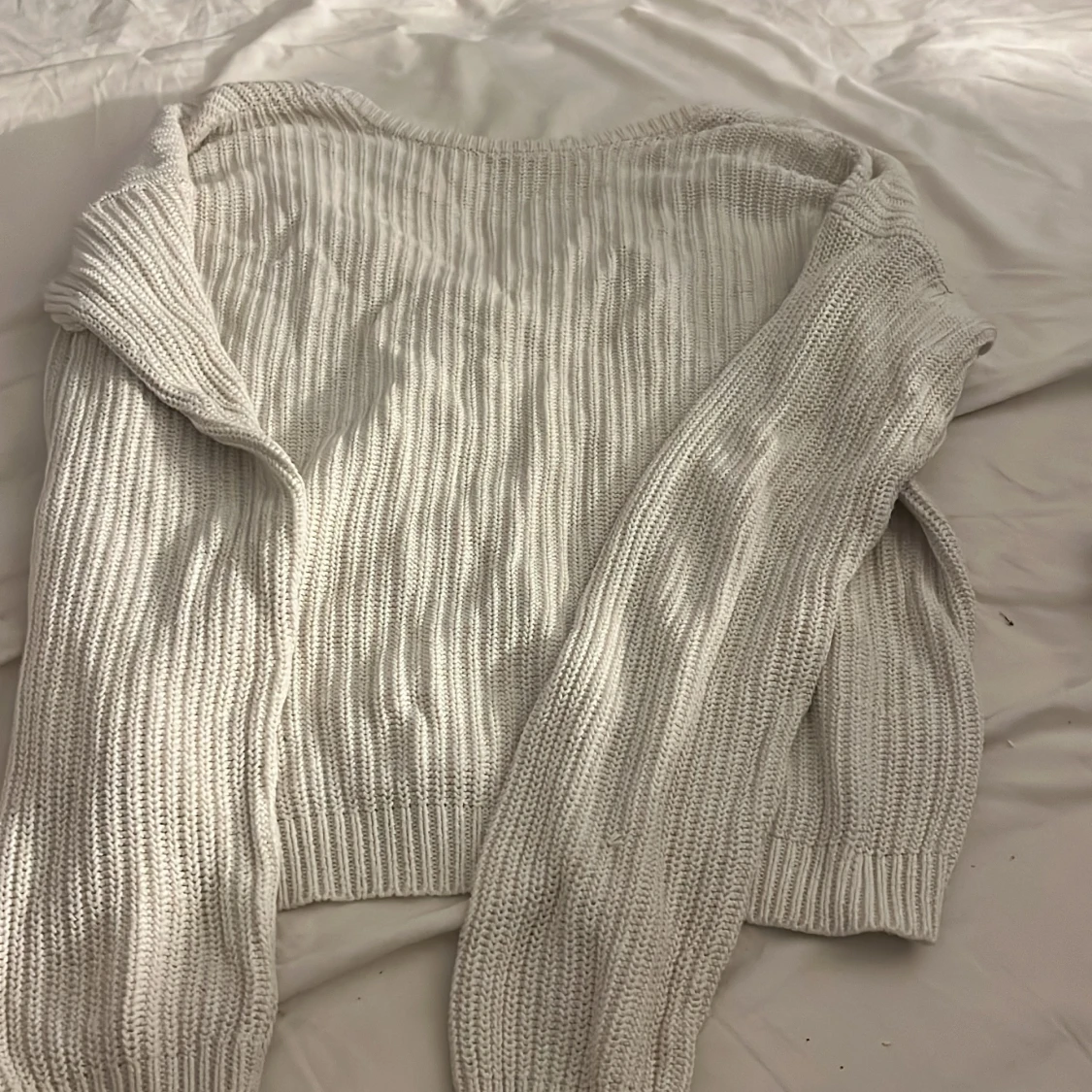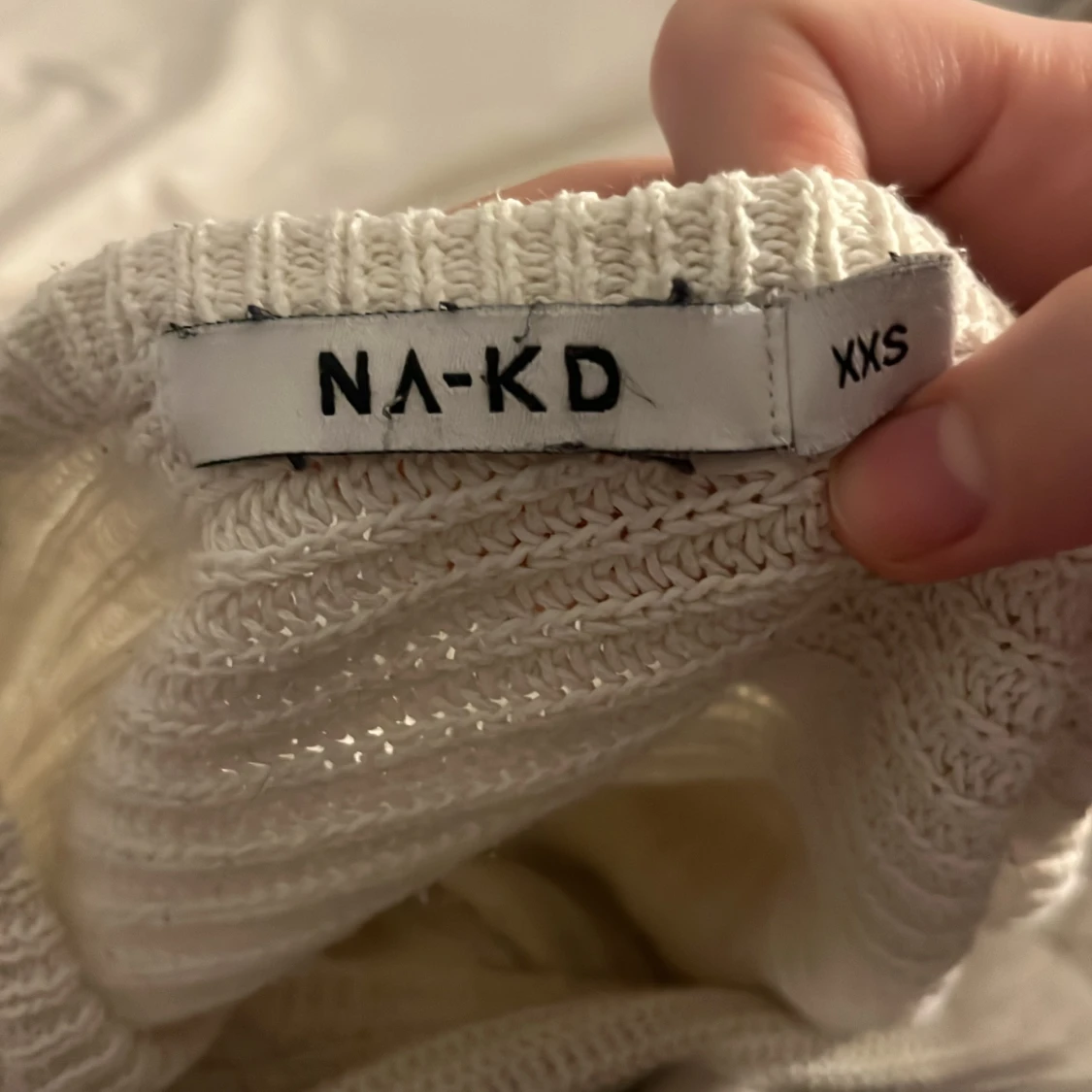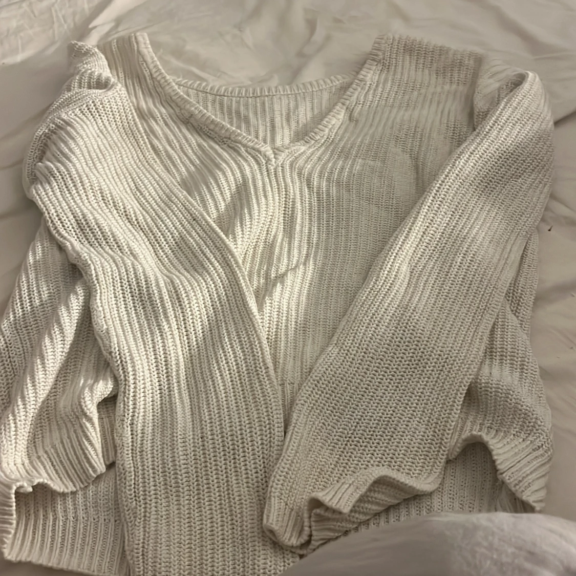 Säljer en vit stickad tröja från NA-KD i storlek XXS. Tröjan har v-ringning och lång ärm. Fått lite smutsvit färg med tiden. Hör av er vid frågor/intresse💕