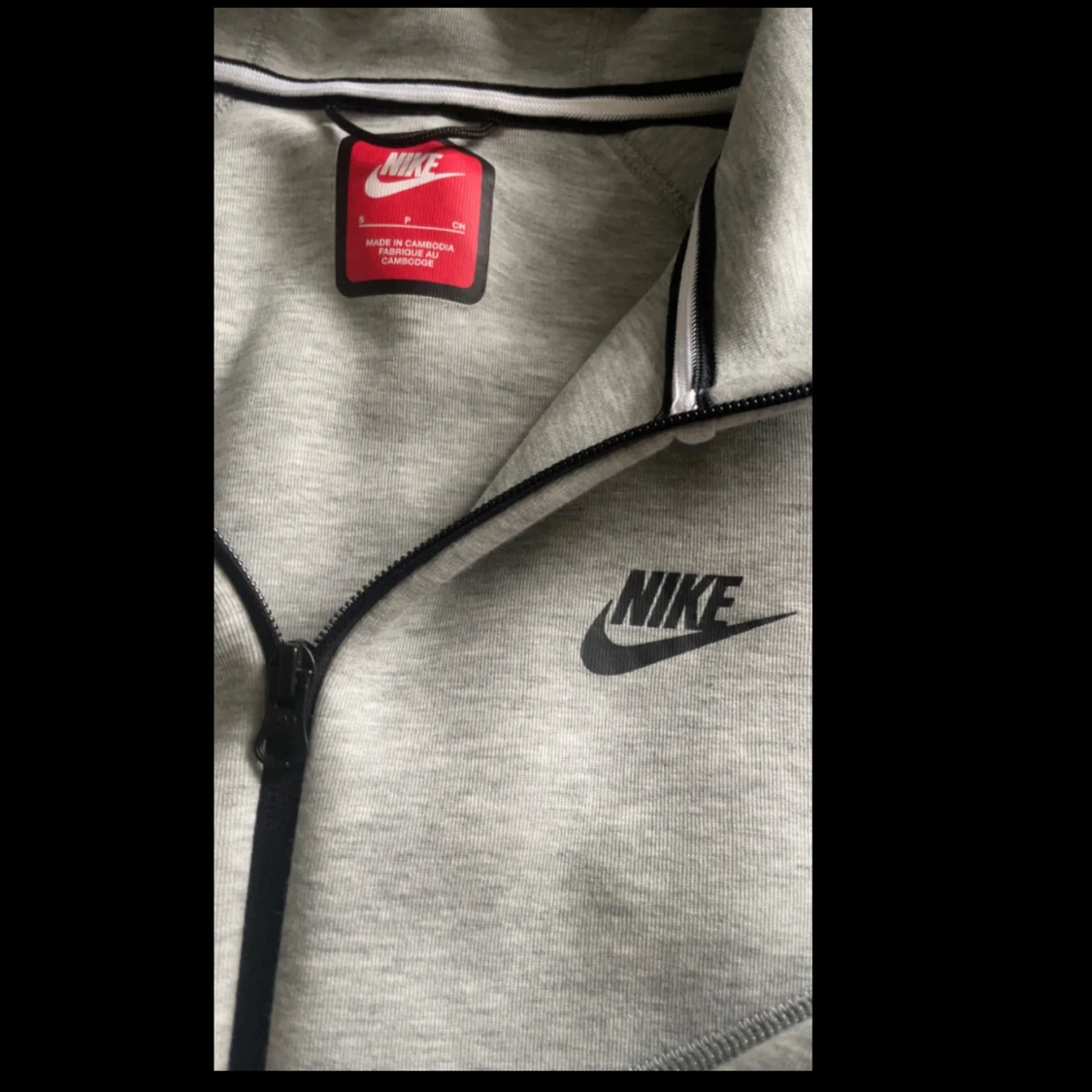 Snygg grå Nike Tech hoodie från Nike med svart logga på bröstet. Tröjan har hel dragkedja, huva och två fickor med svarta detaljer. Perfekt för chill eller träning, och tillverkad i mjuk bomullsblandning för extra komfort. .