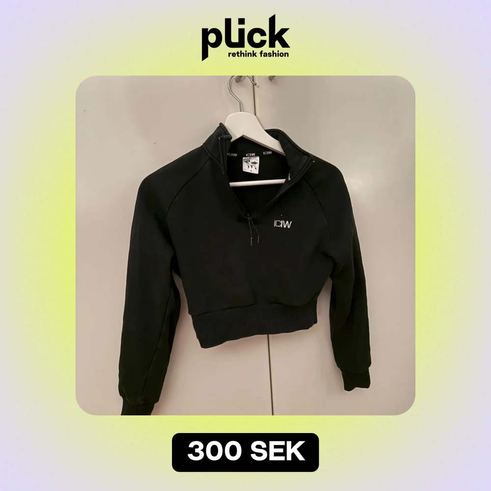 Säljer en snygg svart croppad hoodie från ICANIWILL. Den har en halv dragkedja framtill och är perfekt för både träning och vardag. Materialet är mjukt och bekvämt, och den har långa ärmar med ribbade muddar. Perfekt för en sportig look! 🖤