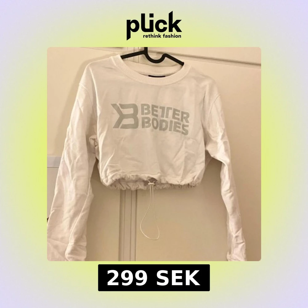 Säljer en vit croppad tröja från Better Bodies med långärmade ärmar och justerbart snöre i nederkant. Perfekt för en sportig look eller till träning! Använd fåtal gånger💗Ny pris 600