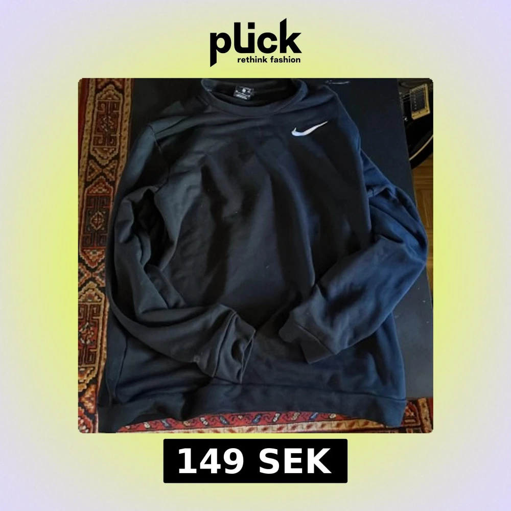 Säljer en svart tröja från Nike med Dri-Fit teknologi. Tröjan har en enkel design med en vit Nike-logga på bröstet. Perfekt för träning eller vardagsbruk. Storlek M. Har använts extremt lite!