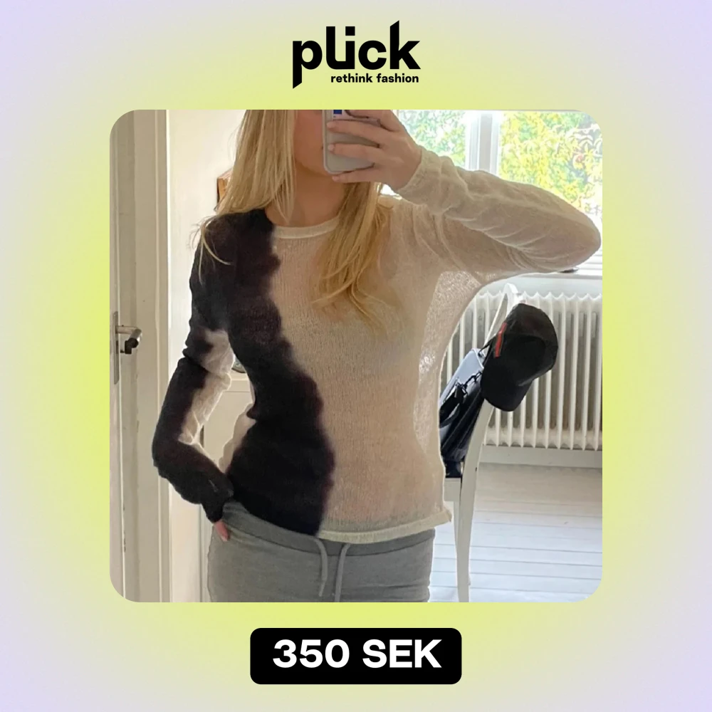 Säljer en cool långärmad tröja med ett mörkblått och vitt mönster på ena ärmen från weekday . Använd endast ett fåtal gånger. Passar XS-M (lånade bilder)