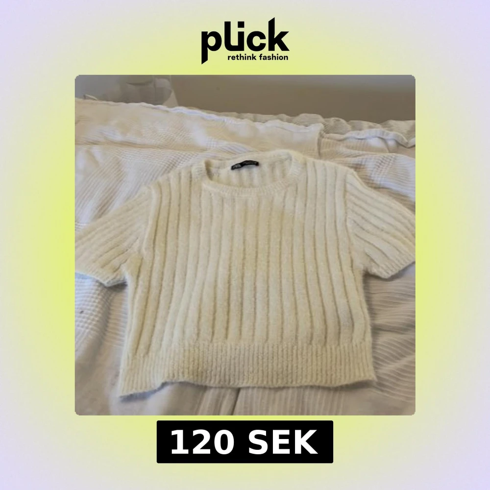 Supermjuk, ribbstickad tröja från Zara i vit färg. Tröjan har korta ärmar och en rund halsrigning, bra till mycket bra skick