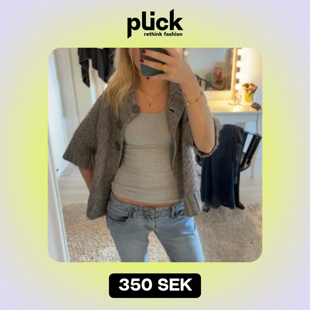 Säljer denna gråa stickade trekvartsärmade koftan med knappar jag köpt secondhand! Passar till allt 🩷