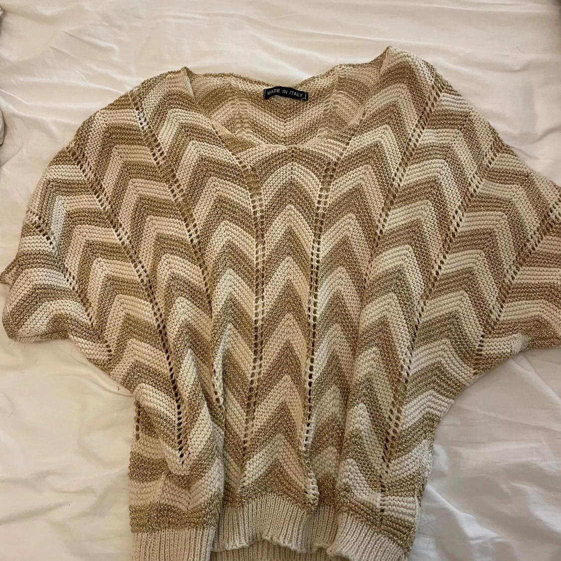 Superfin virkad tröja med trekvartsärmar. Köpt i en butik på Marstrand! Endast använd en gång✨ onesize men skulle S/M. Köpt för 600kr