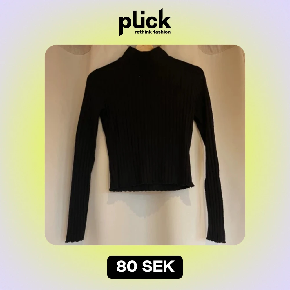 Svart långärmad polotröja från Ginatricot med lite volang detalj ned till och i ärmarna (se 2:a bilden). Strl S
