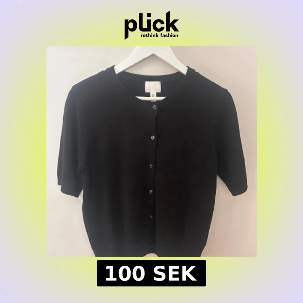 Säljer en stilren svart kofta från H&M med knappar framtill. Perfekt för lager-på-lager och enkel att matcha med olika outfits. Koftan har korta ärmar och en rund halsringning.