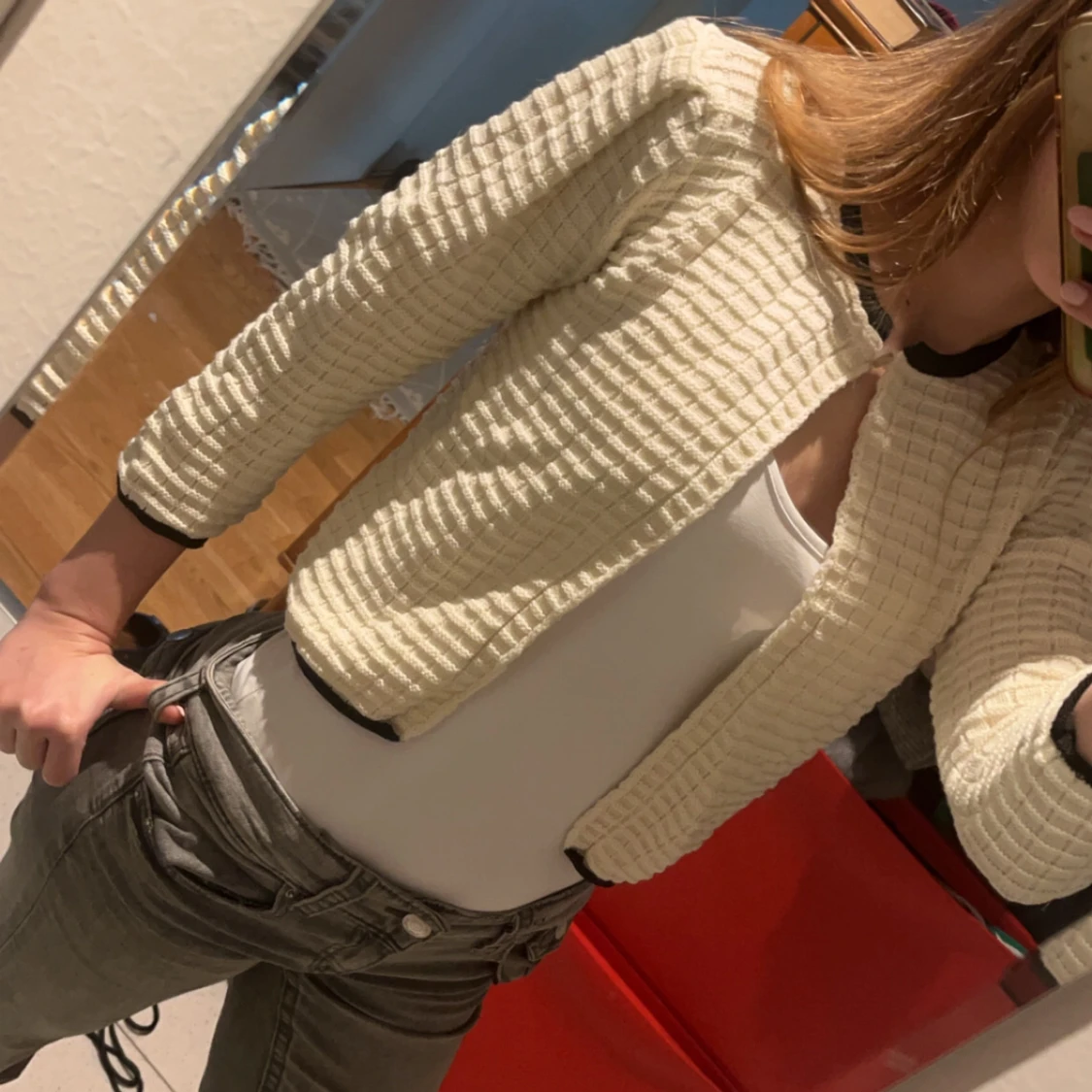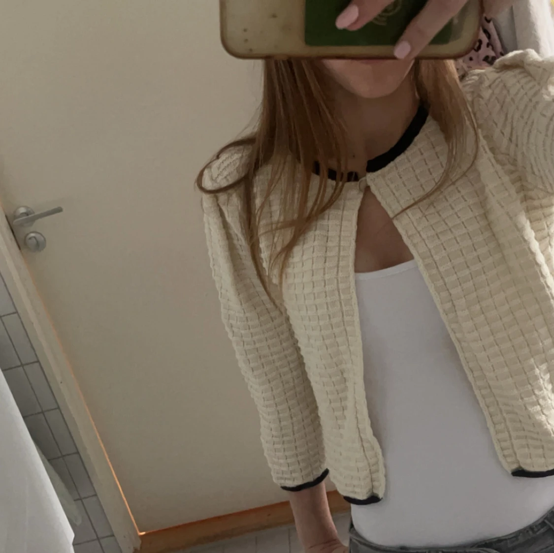 Säljer en superfin beige quiltad kofta med trekvartsärm. Den har en stilren design med svarta detaljer vid ärmslut och krage. Perfekt för höst och vinter💕💕Passar både till vardags och fest!