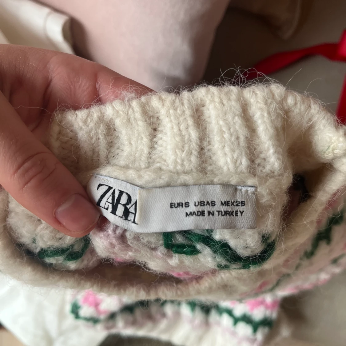 Så fin stickad kortärmad tröja med färgglada detaljer. Varm passande till hösten! Från zara storlek S🌸