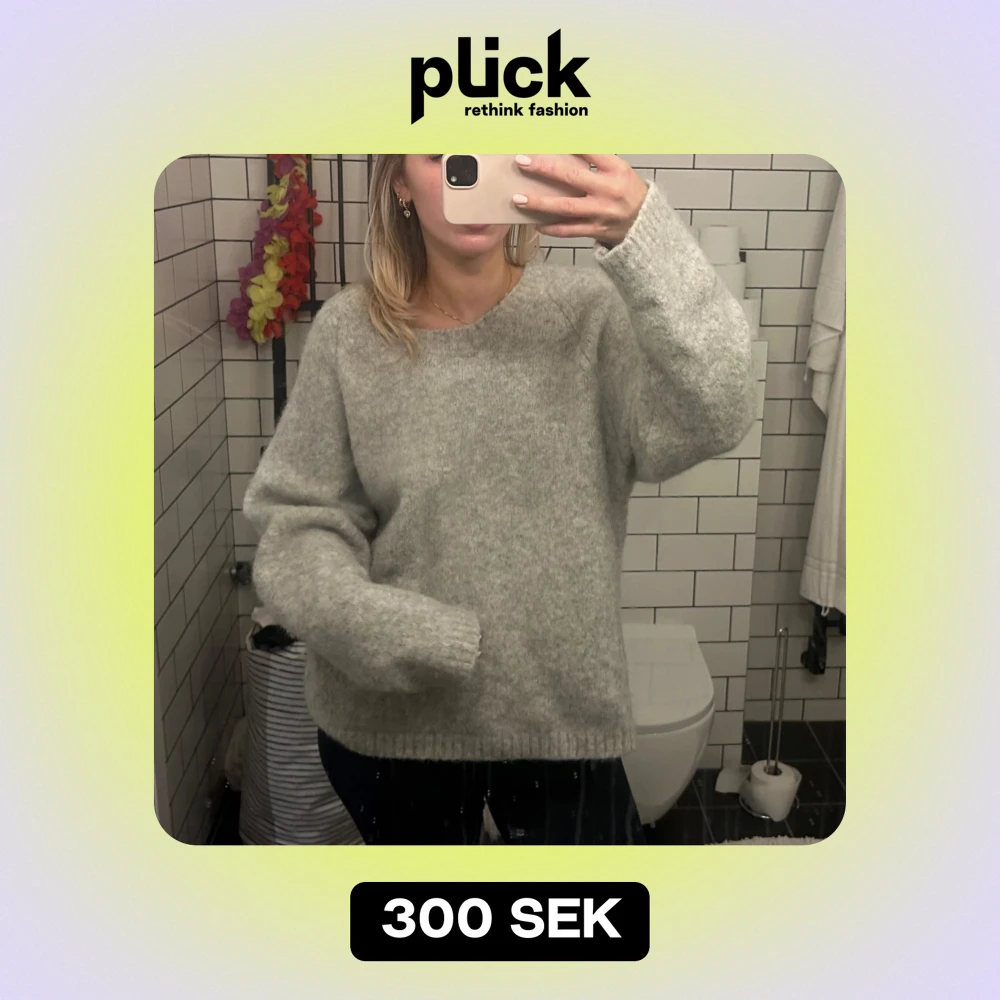 Mysig grå stickad tröja perfekt för kyliga dagar. Den har en avslappnad passform med långa ärmar och ribbade kanter. Perfekt för både höst och vinter, och funkar lika bra till jeans som till en kjol. Superbekväm och stilren! Nypris 800kr, lite stickig