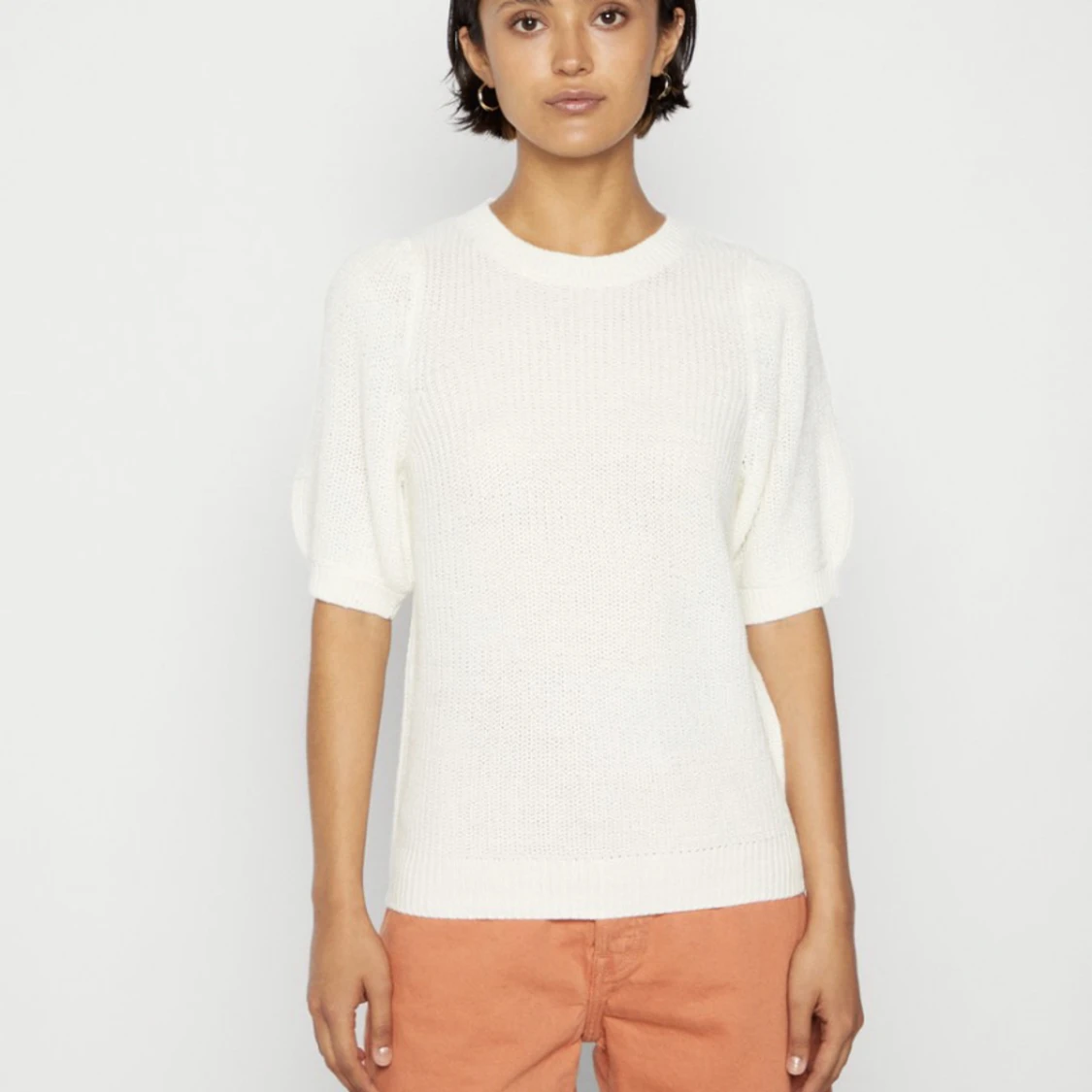 Slutsåld stickad vit t shirt från veromoda! Jättebra skick använd fåtal gånger!❤️❤️