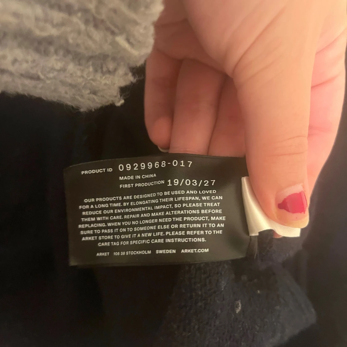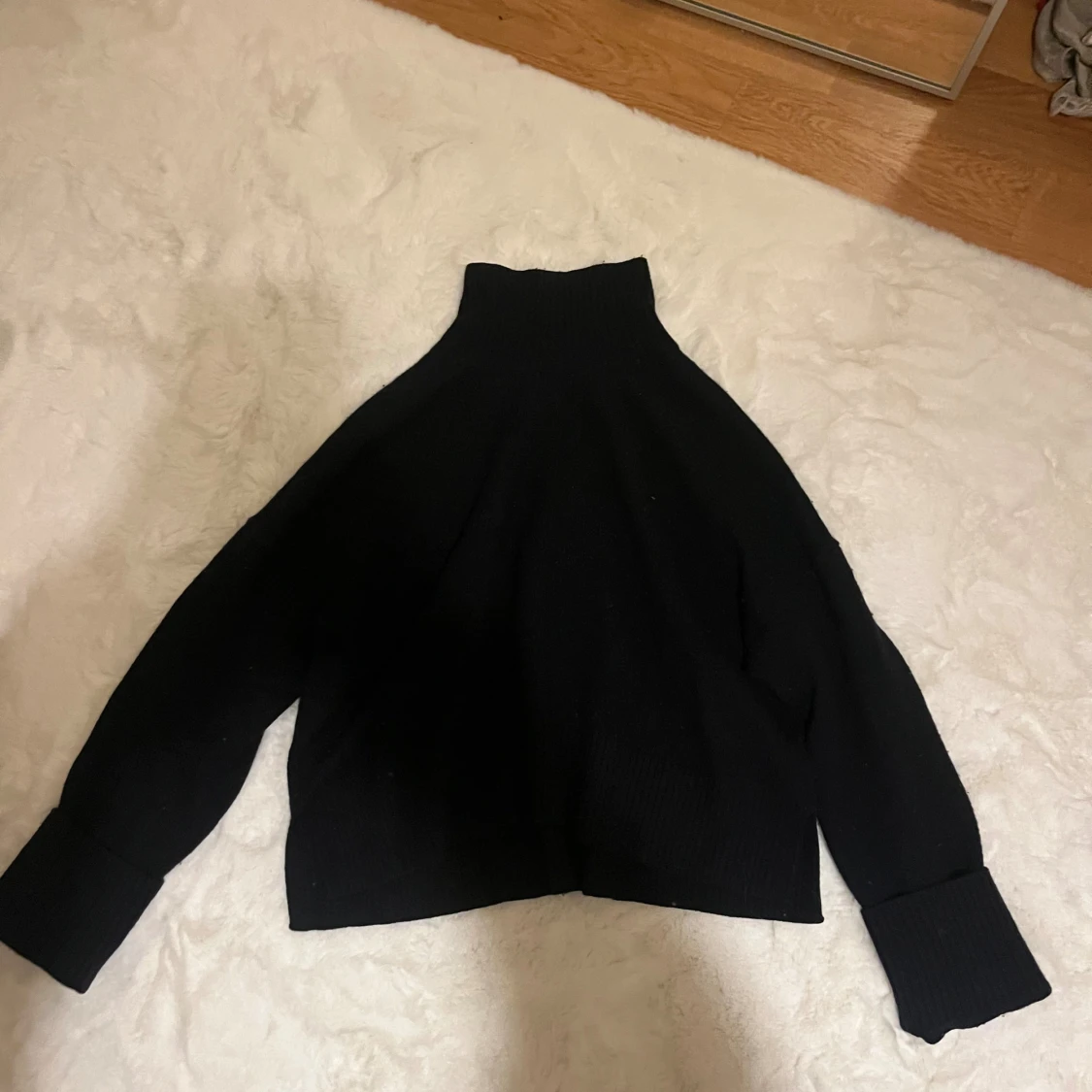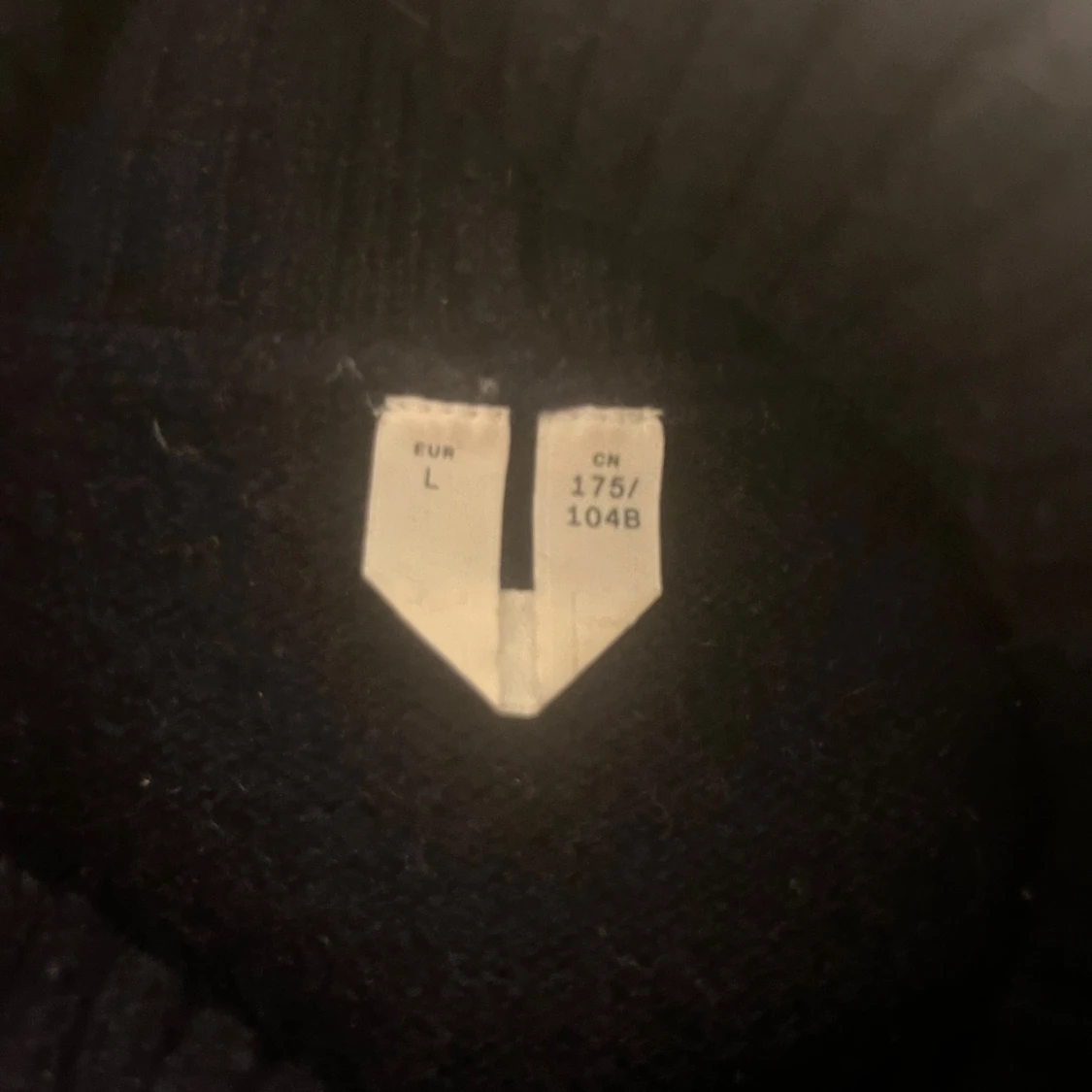 Superfin marinblå polo tröja ifrån arket! Storlek L men sitter super snyggt overzied på mig som vanligtvis är en S. Se sista bild för hur modellen på tröjan är lite bättre då det är svårt att få med på bild (det är exakt samma modell). Nypris 790 kr! Avnoppras och tvättas innan frakt.