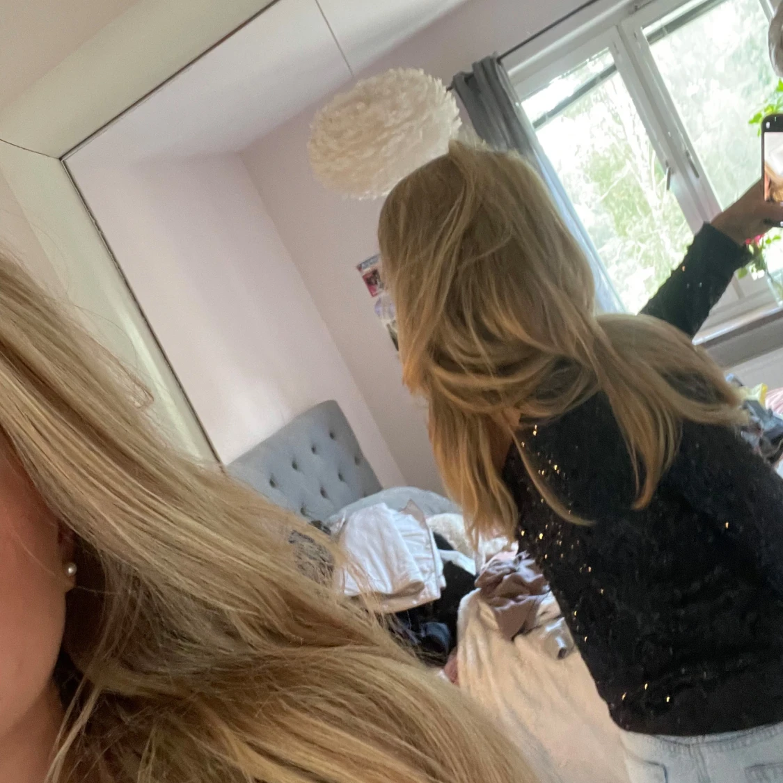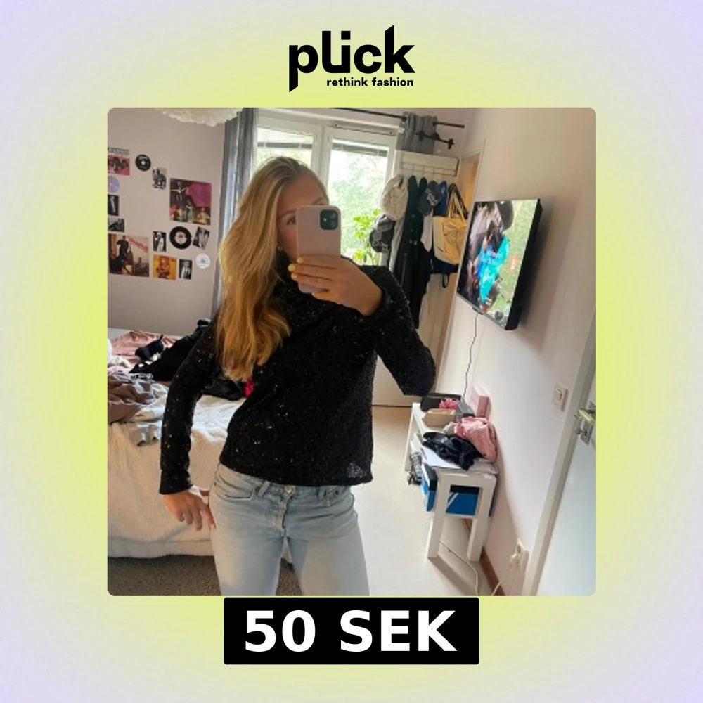 Säljer en svart långärmad topp från Vero Moda, täckt med glittriga paljetter. Toppen har en rak passform och dragkedja i ryggen för enkel på- och avtagning. Perfekt för dig som vill sticka ut med lite extra glitter.
