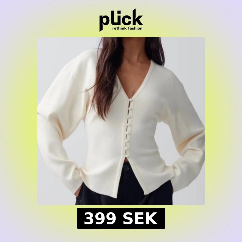 !INTRESSEKOLL! stilren vit kofta med knappar framtill. Koftan har en v-ringad design och långa ärmar, perfekt för en elegant och avslappnad look. Tryck inte på ”köp nu” !kommer inte gå ner i pris då den är helt ny!