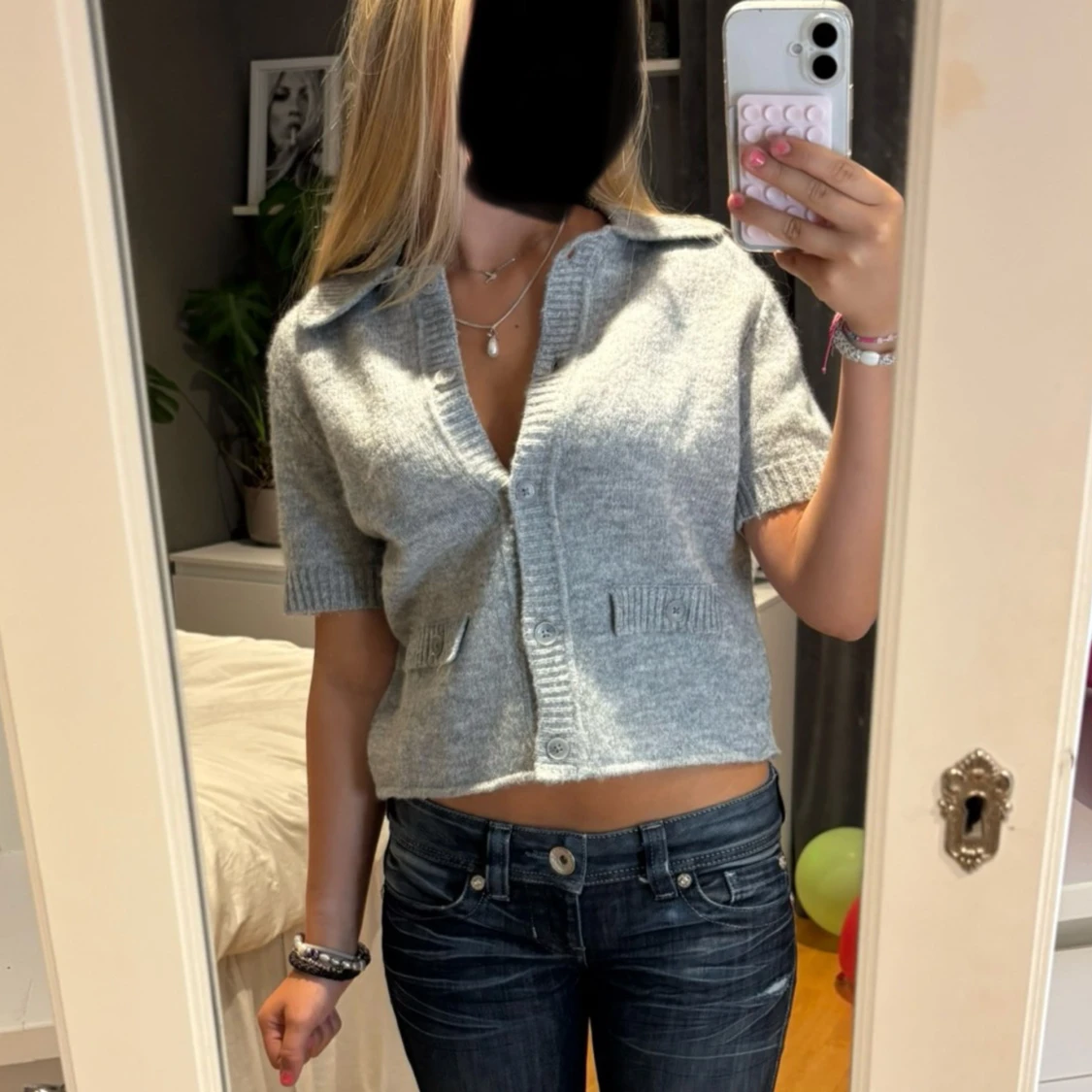 Säljer en grå stickad kofta/tröja från H&M i storlek S. Tröjan är ny utan prislapp, den e aldrig använd. Säljer även jeansen på bilden i en annan annons.💞