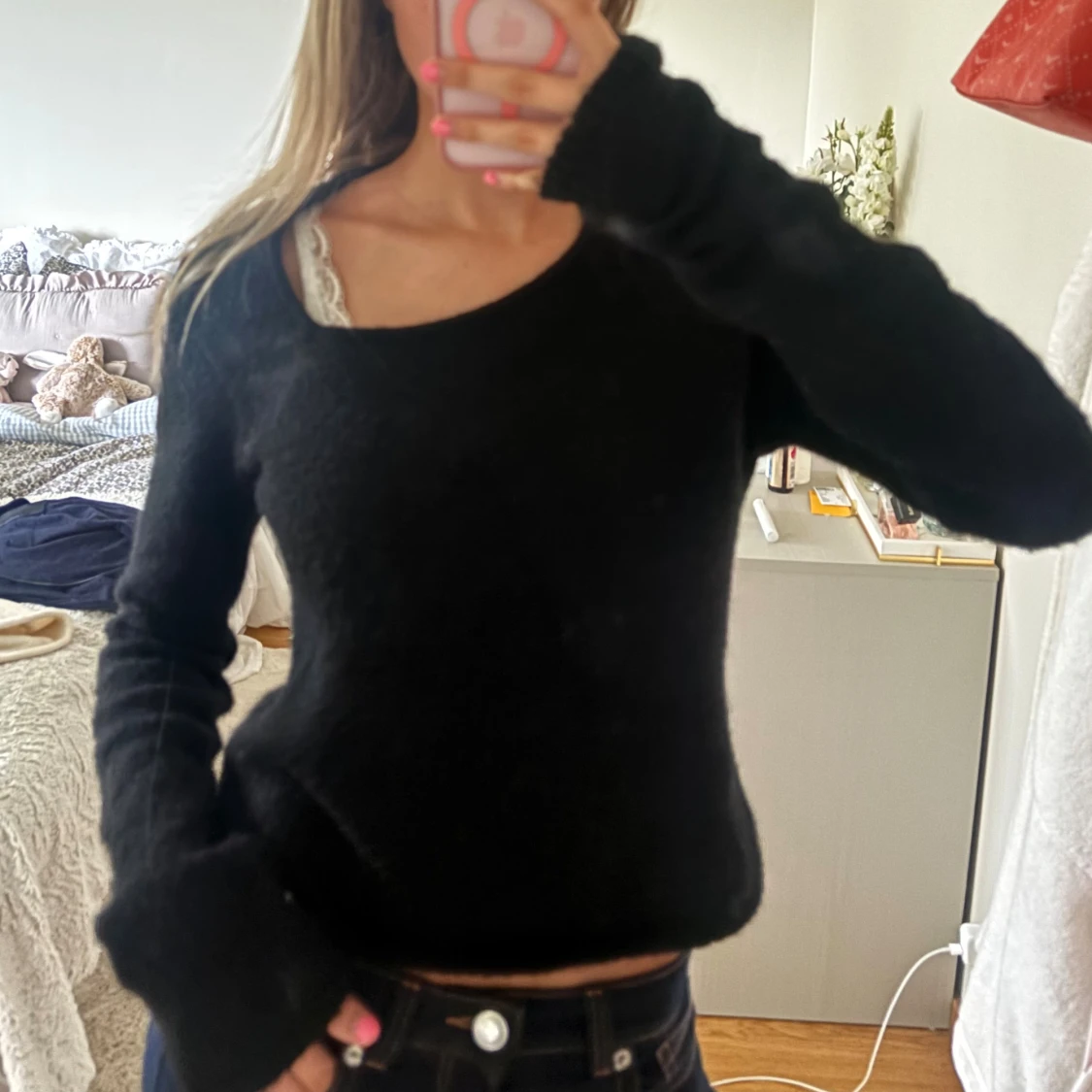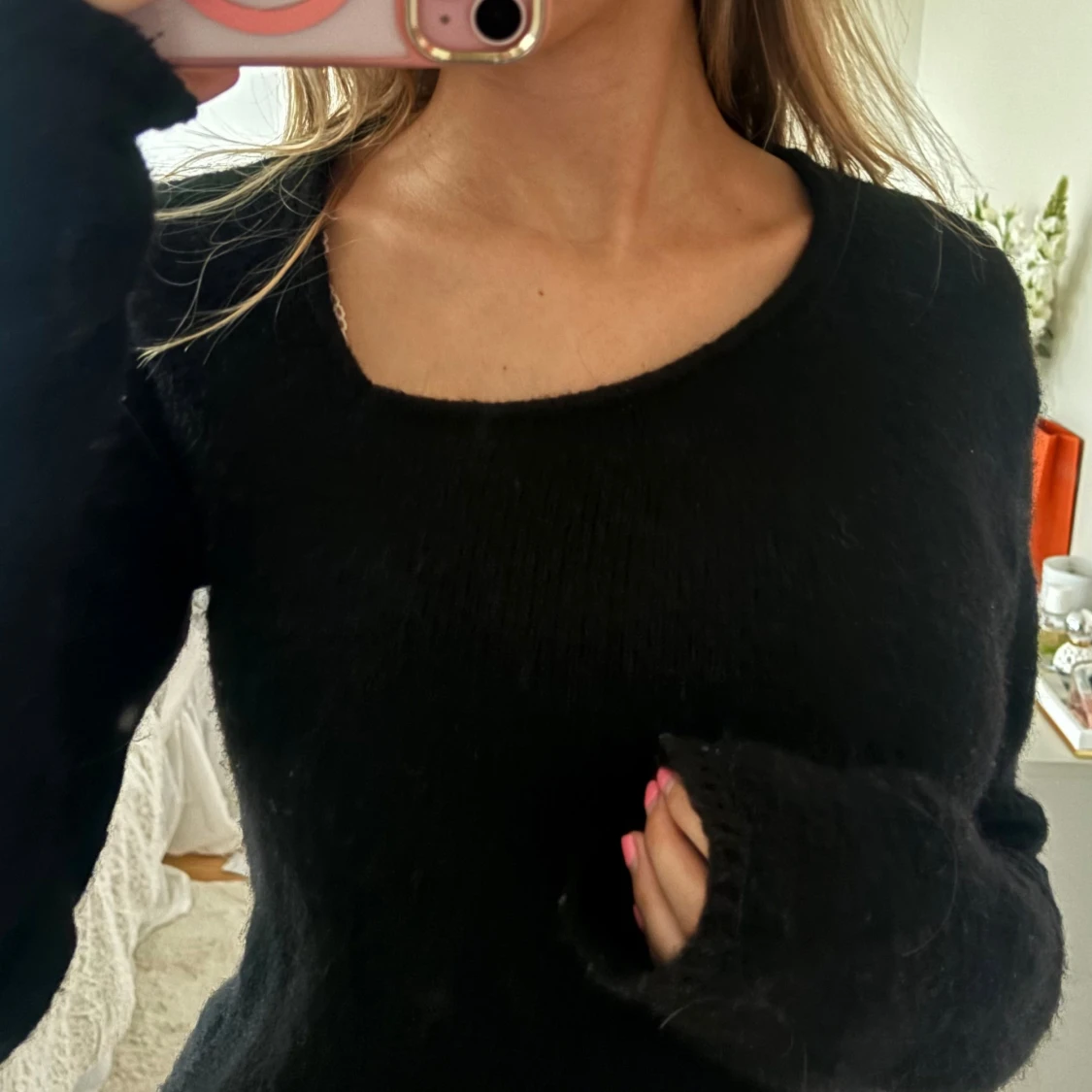 Svart stickad tröja med skuren hals❤️❤️