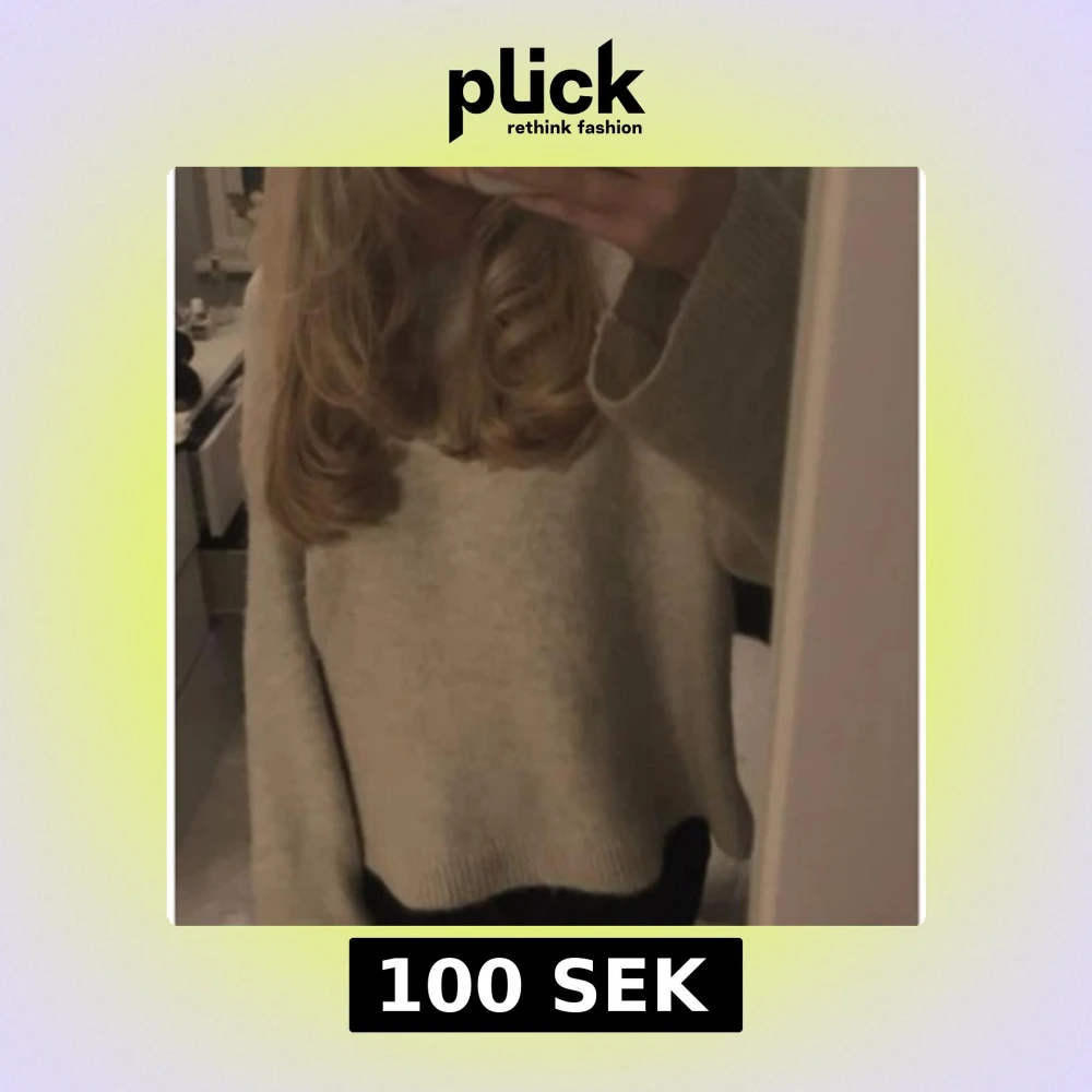 Mysig beige stickad tröja med långa ärmar och en avslappnad passform. Perfekt för kyligare dagar.