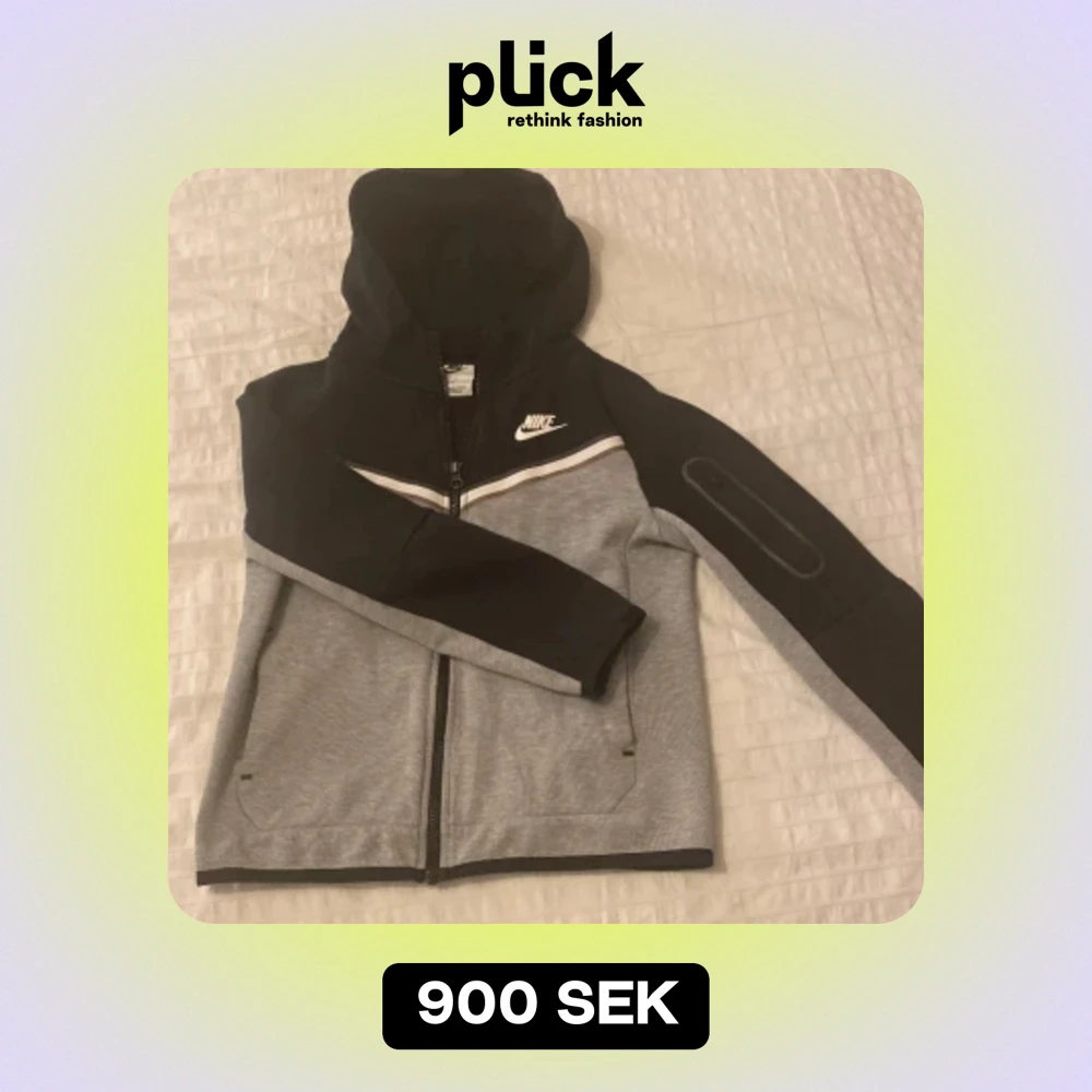 Hej! Jag ville sälja en Nike tech med färgen svart och grått.Jag tyckte att det var för liten på mig men jag har haft på mig den några gånger. Jag hoppas att priset är värt de :)