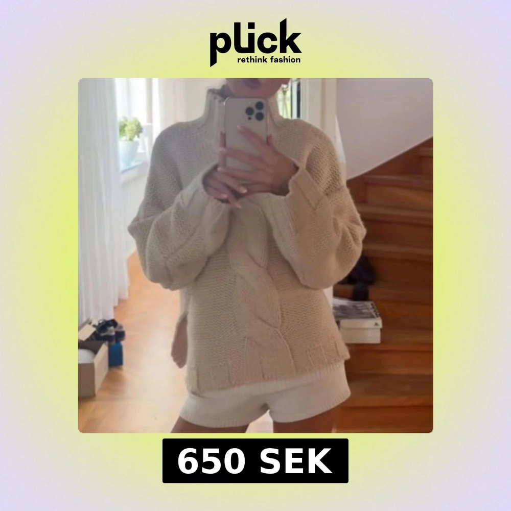 Säljer denna snygga och Supermysig beige stickad tröja med polokrage och grov kabelstickning framtill❤️❤️❤️