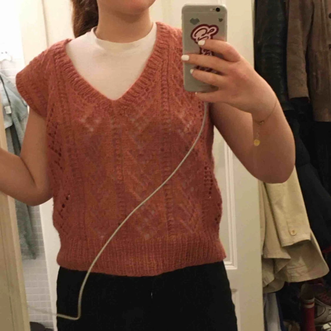 Rosa stickad väst. Bra skick! Ingen angiven storlek eller märke så skulle gissa att någon stickat den själv. Bara att fråga om du undrar något!
