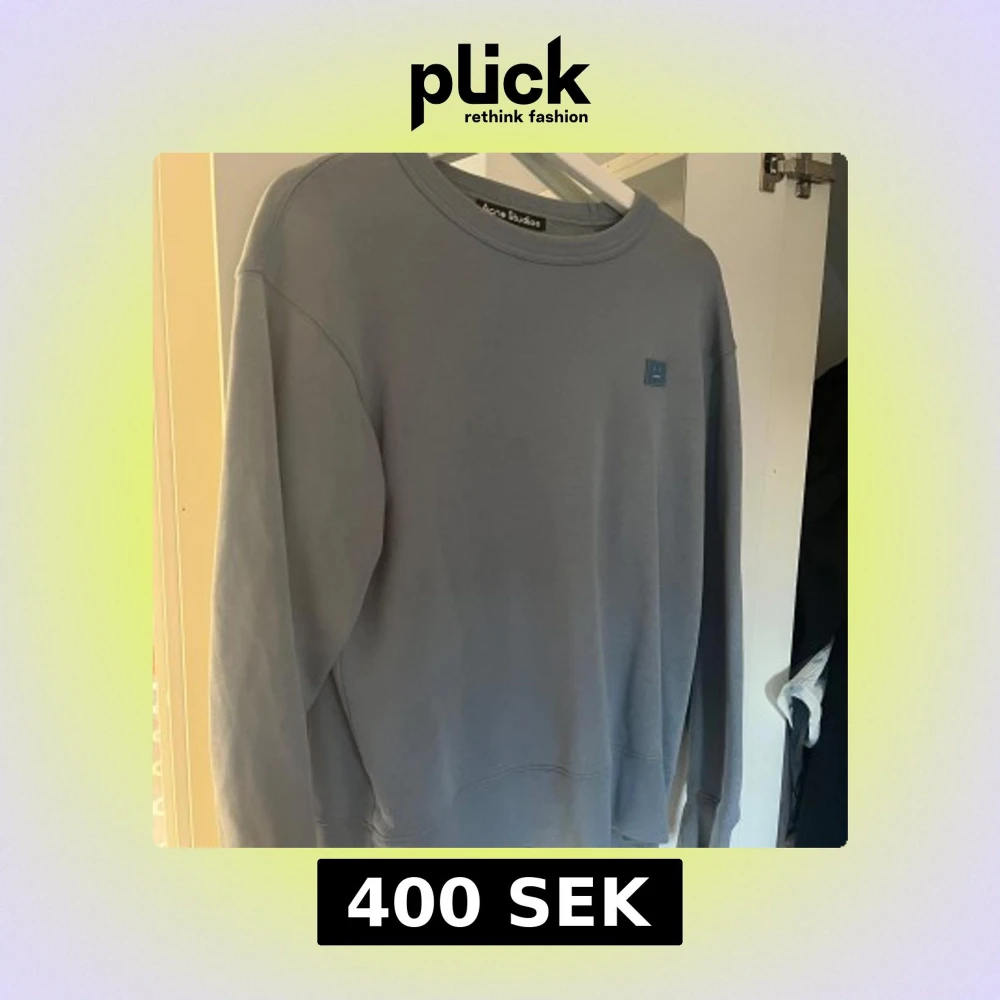 Säljer en stilren ljusblå sweatshirt från Acne Studios med deras ikoniska face-logga på bröstet. Tröjan har rund halsringning, långa ärmar och är gjord i mjuk bomull. Väldigt fin!