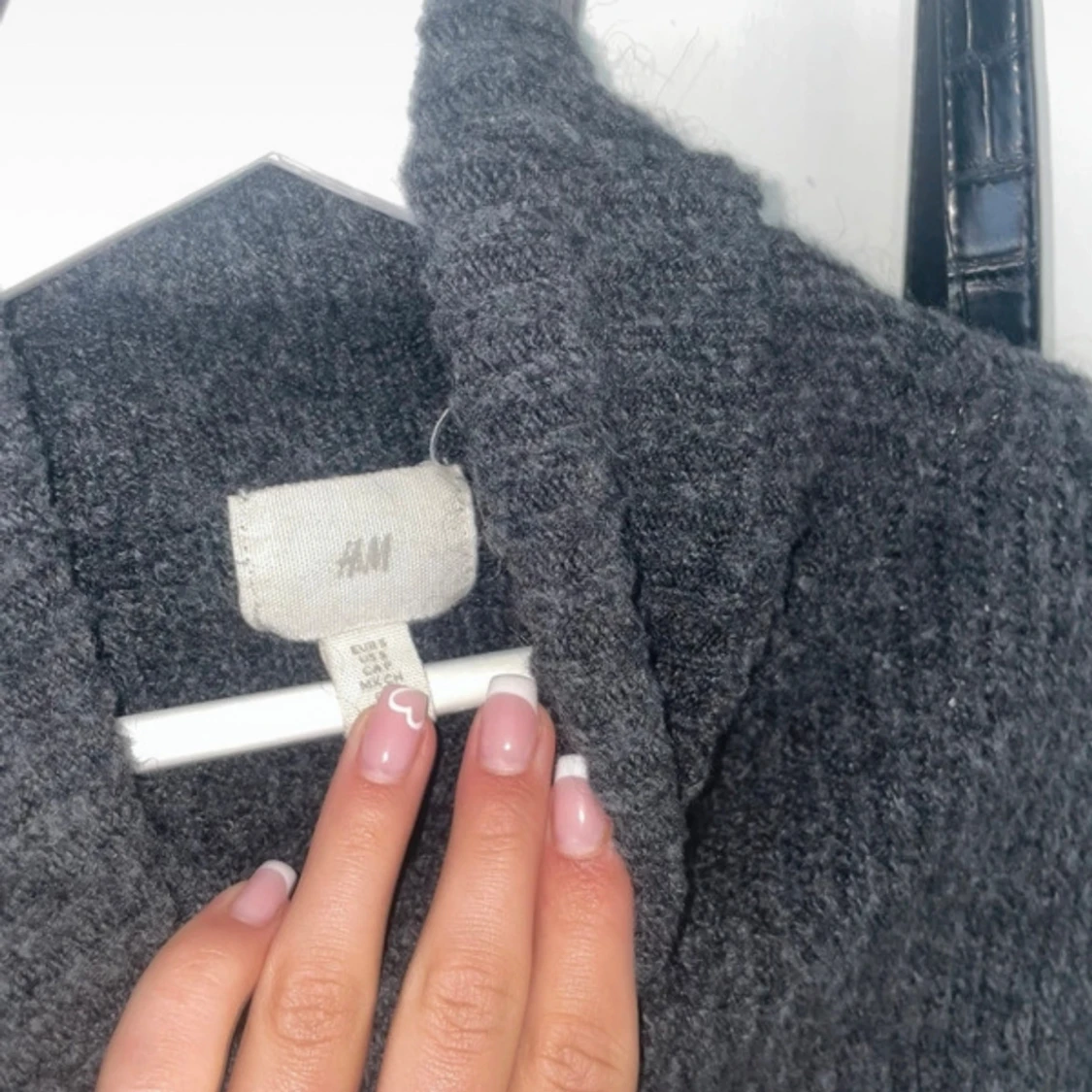 Mysig mörkgrå stickad polotröja från H&M i storlek S. Tröjan har en hög krage och är ribbstickad för extra struktur. Perfekt för kyliga dagar och enkel att styla med jeans eller kjol. Klassisk och tidlös design som funkar året runt.