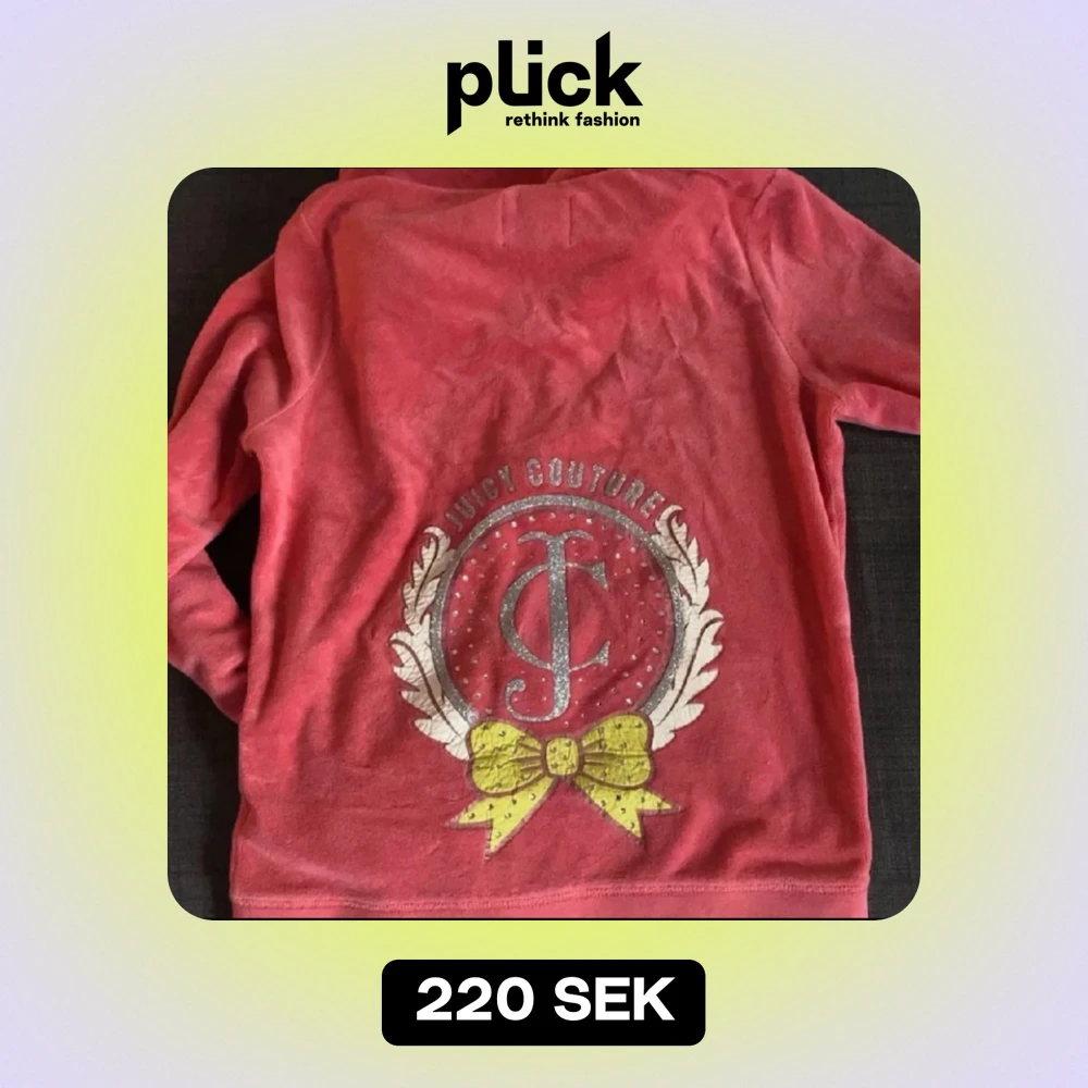 Säljer en rosa kofta från Juicy Couture med glittrig logga och gul rosett på ryggen. Tröjan har dragkedja och fickor framtill, samt en mysig huva. Perfekt för en avslappnad stil.