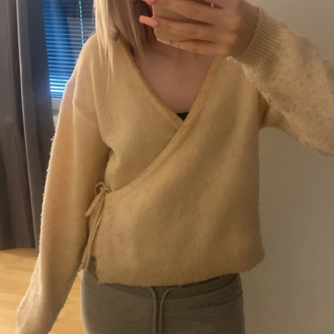 Fin rosa stickad öppen tröja som man knyter på sidan, har använts men inte på senaste! Inget fel på tröjan men lite nopprig bara men de är inget som man tänker på!